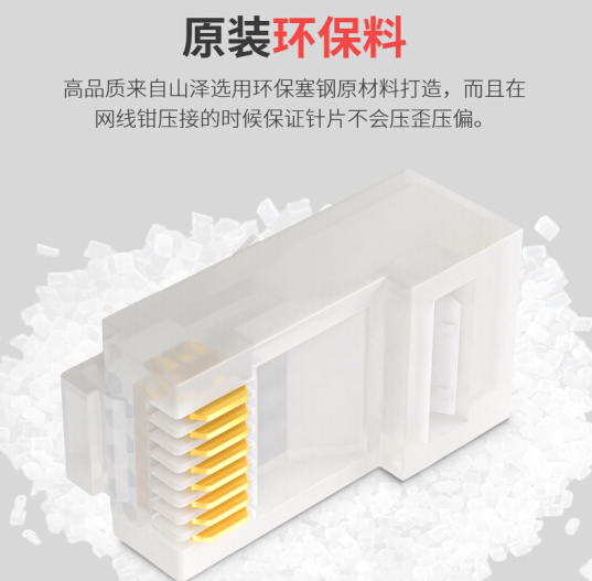 山泽(SAMZHE)SG-6100六类千兆RJ45水晶头CAT6类8P8C网络接线头镀金进口环保塞钢材质 折不断 100个/盒× 1