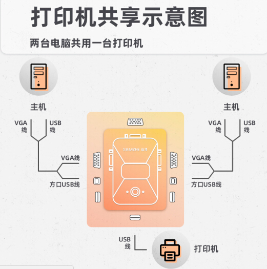 山泽(SAMZHE)SZ-211B 2口KVM切换器 手动 USB2.0接口鼠标 键盘 多电脑VGA切换器显示器共享 配原装线 *1