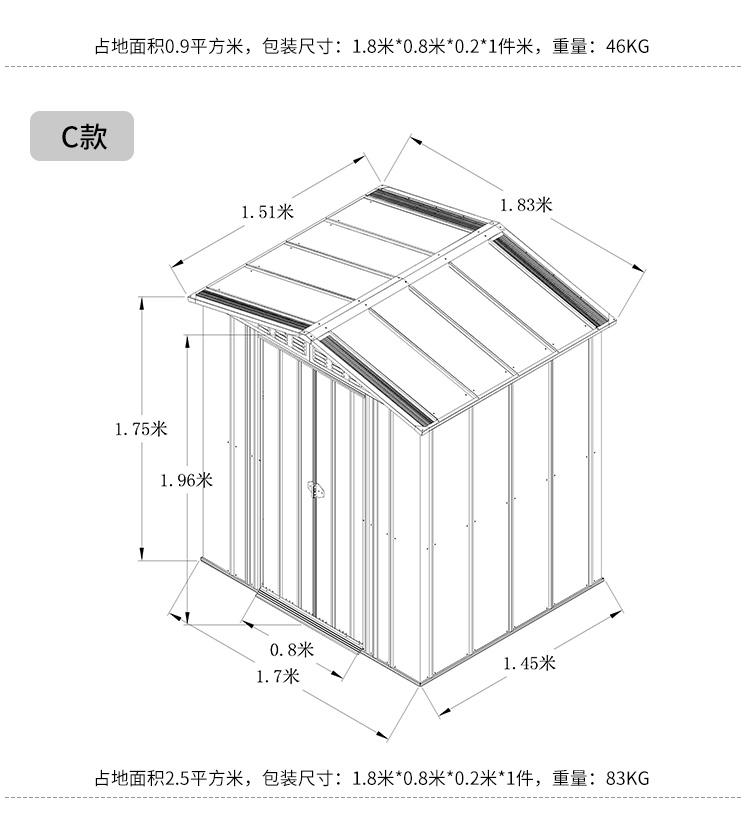 야외 도구 방 잡화 방 임시 테라스 태양 보호 방수 집 잡화 보관실 이동식 실