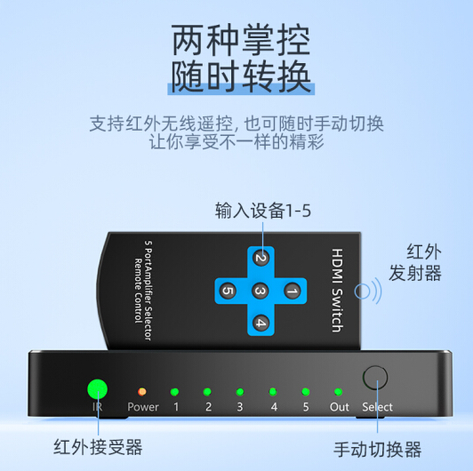 Shanze HDMI2.0 HD 스위처 5-in-1-out 5-in-1-out 4K HD 원격 제어 전환 HV2-400