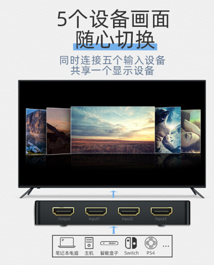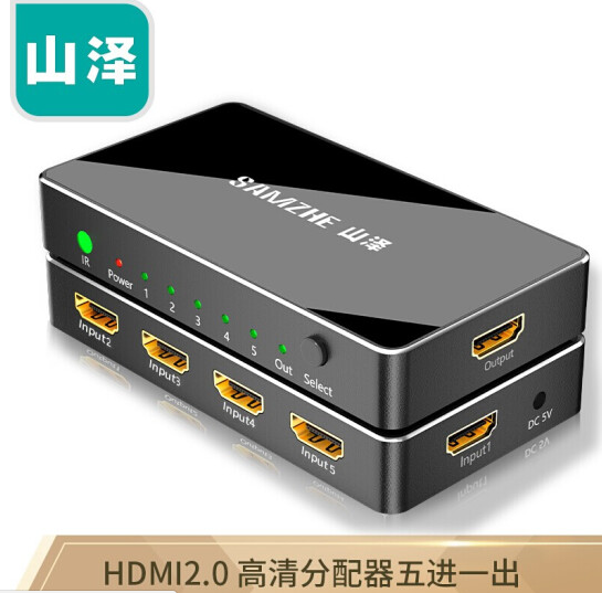 山泽(SAMZHE)HDMI2.0高清切换器五进一出5进1出机顶盒电脑显示屏切换4K高清遥控切换音视频同步 HV2-400*1