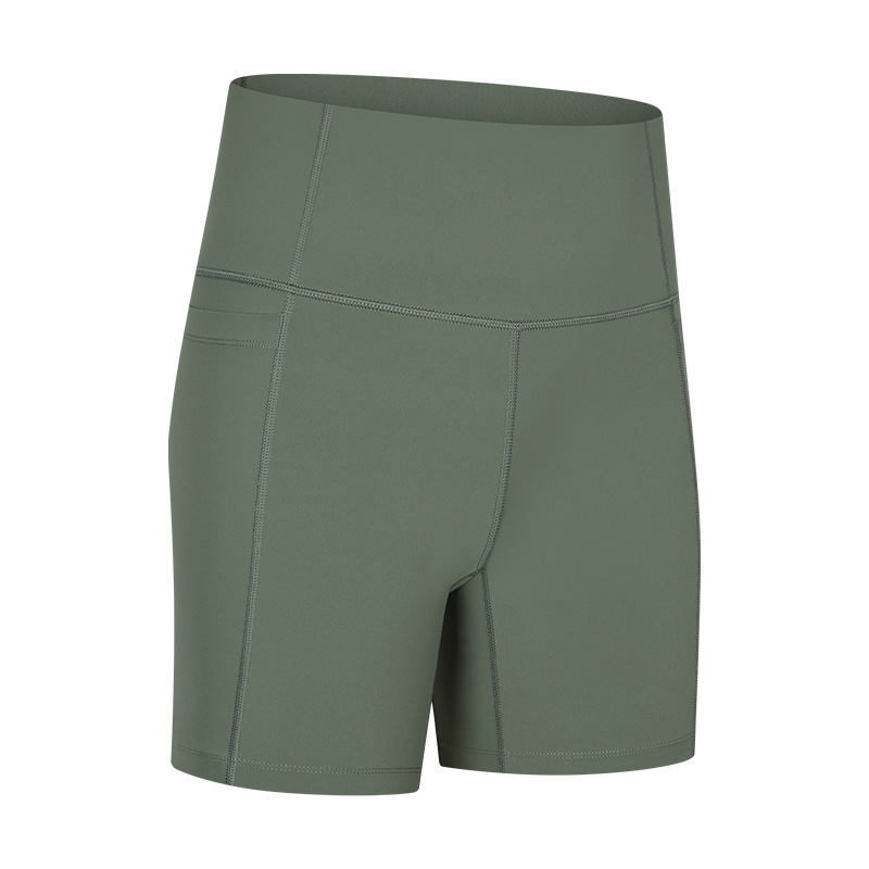 봄 새로운 복부 타이트 요가 피트니스 바지 여성용 스티칭 포켓 단색 스포츠 캐주얼 3 점 바지스토어 가기