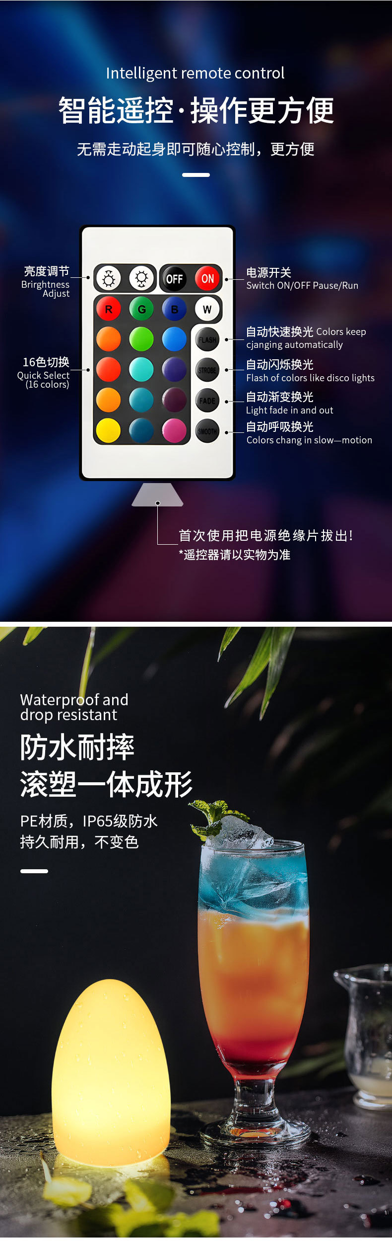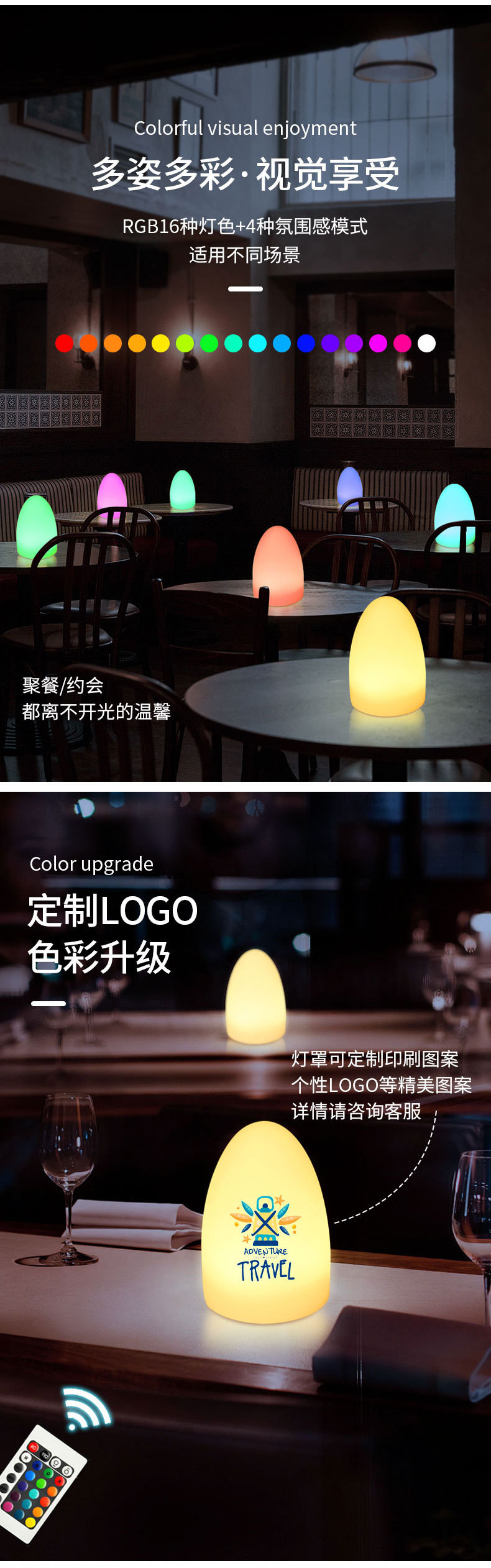 소형 도매 led 야간 라이트 볼 충전 리모콘 색상 변경 다채로운 원통형 달걀 모양의 별 실내 대기등스토어 가기