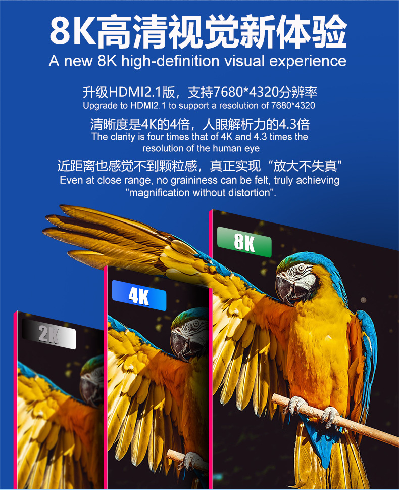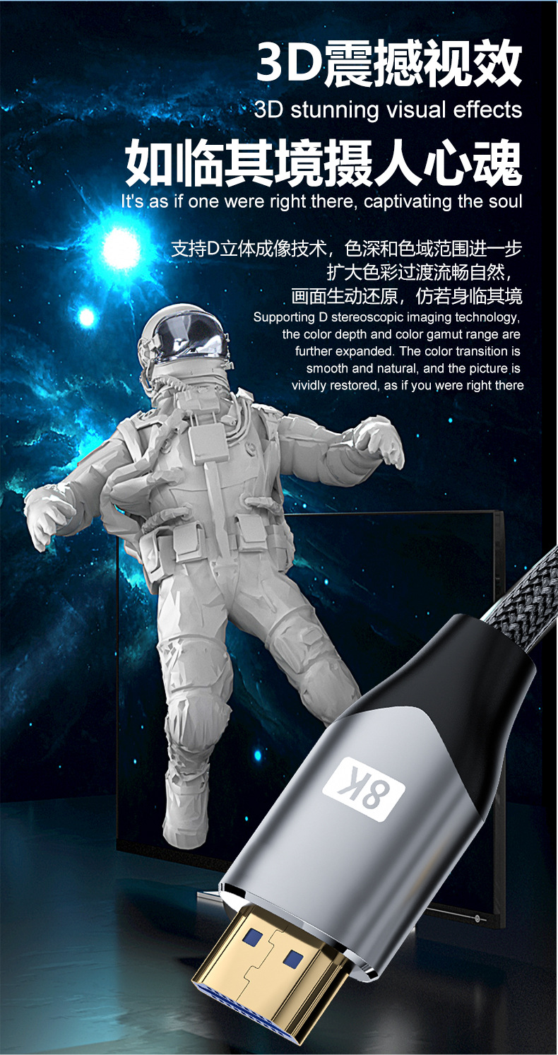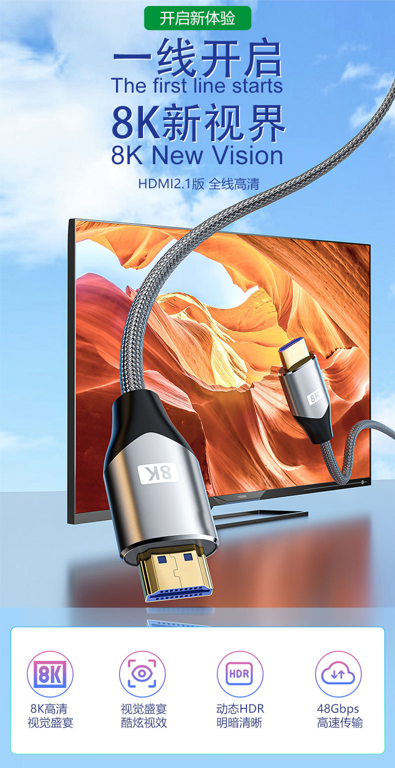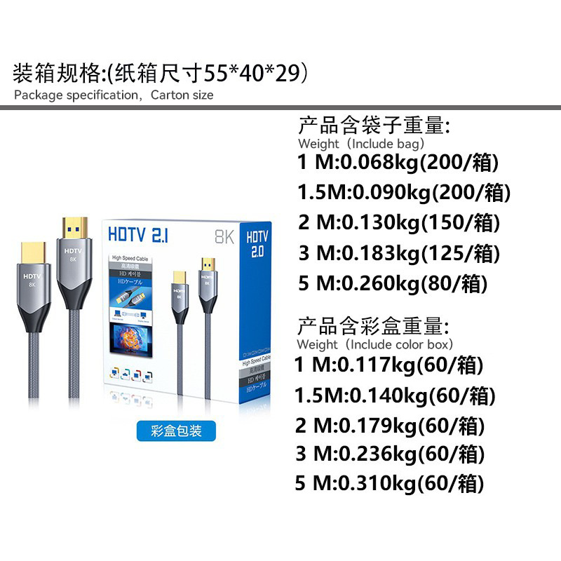 批发hdmi线2.1 8K/4K120hz电视机顶盒电脑主机投影视频连接高清线