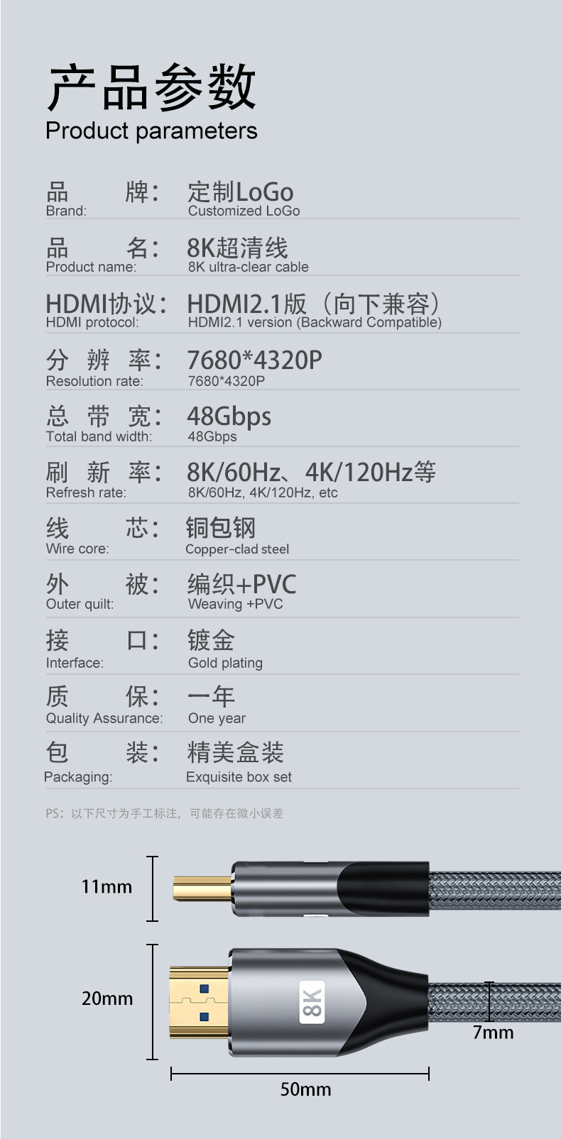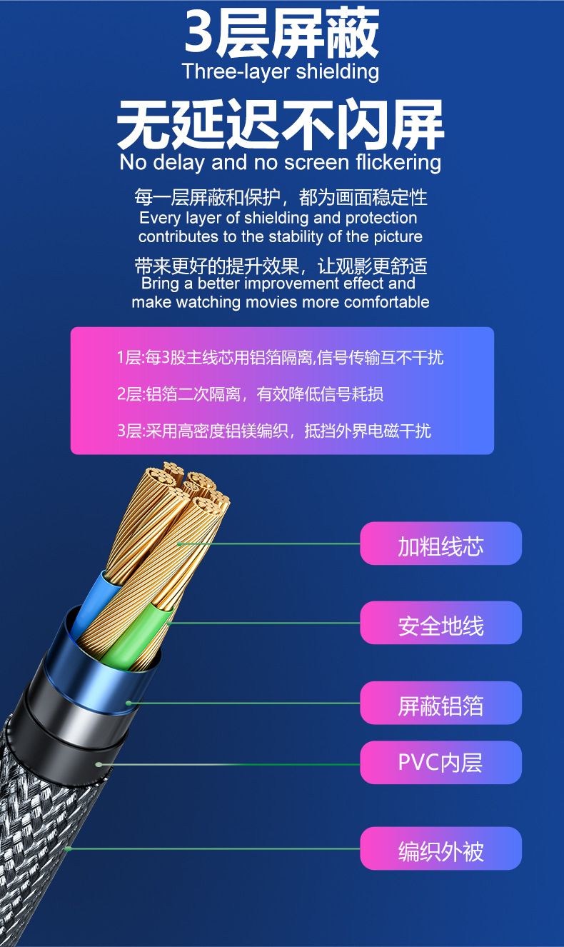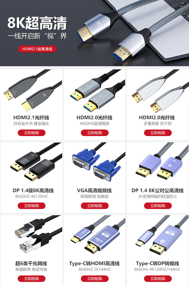 批发hdmi线2.1 8K/4K120hz电视机顶盒电脑主机投影视频连接高清线