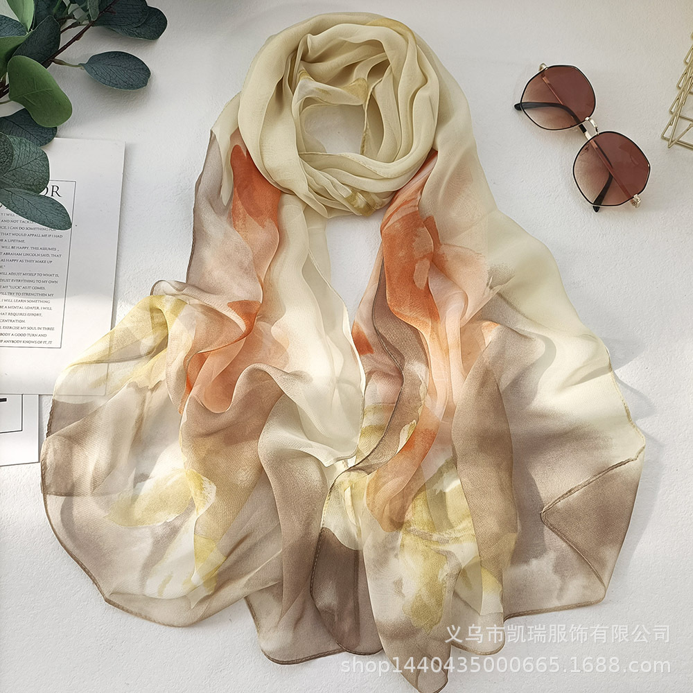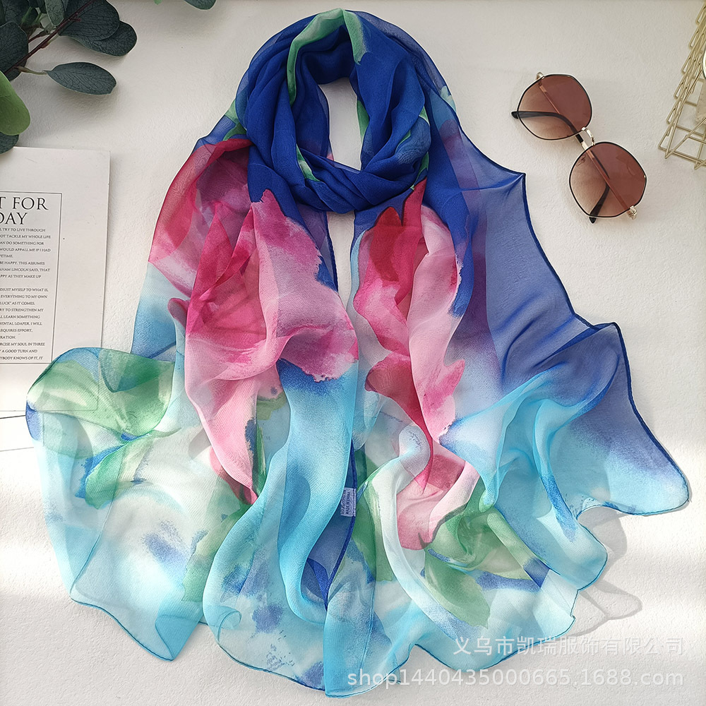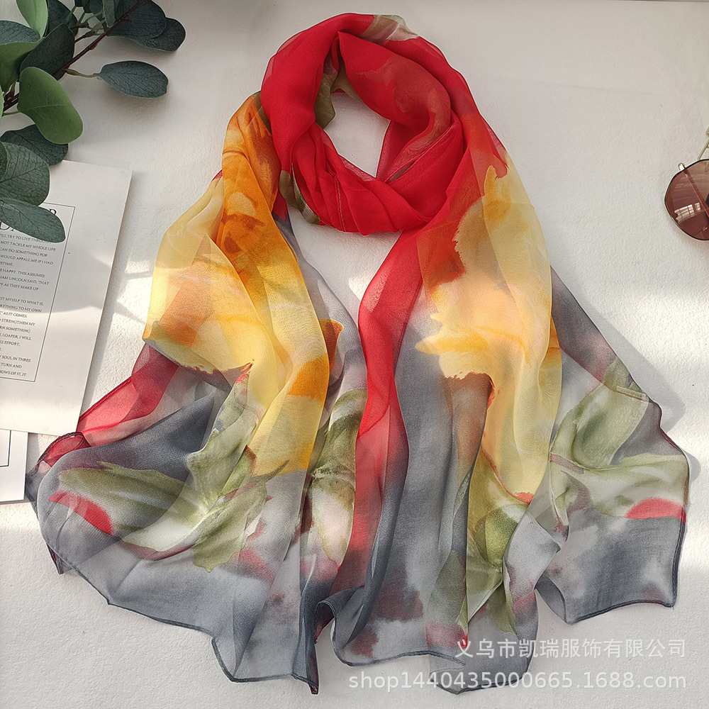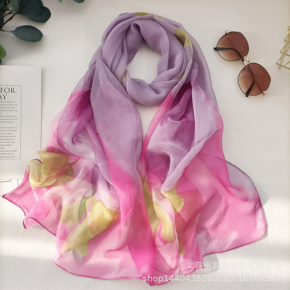 여름 스카프 실크 스카프 여성용 장식 얇은 부드러운 조젯 진정한 사랑 장미 긴 봄과 가을 모든 매치 자외선 차단제 숄스토어 가기