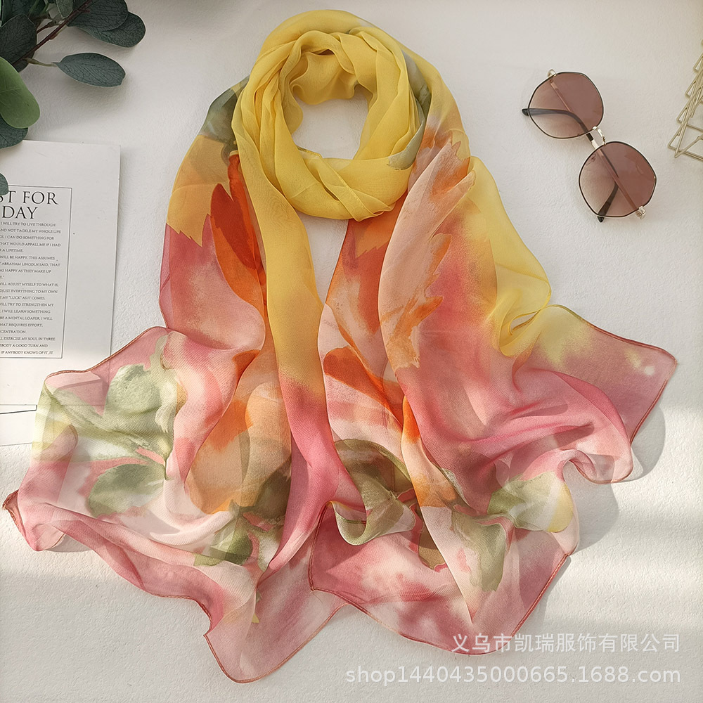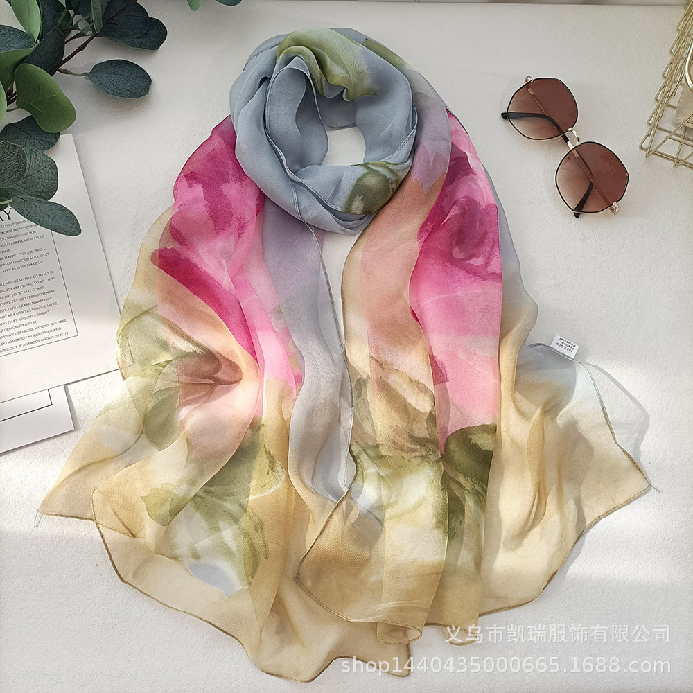 여름 스카프 실크 스카프 여성용 장식 얇은 부드러운 조젯 진정한 사랑 장미 긴 봄과 가을 모든 매치 자외선 차단제 숄