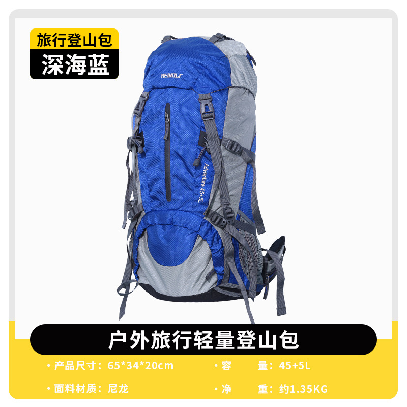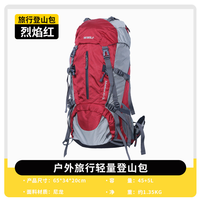 Hewolf公狼户外50L双肩包男女户外休闲登山包 骑行野露营装备背包
