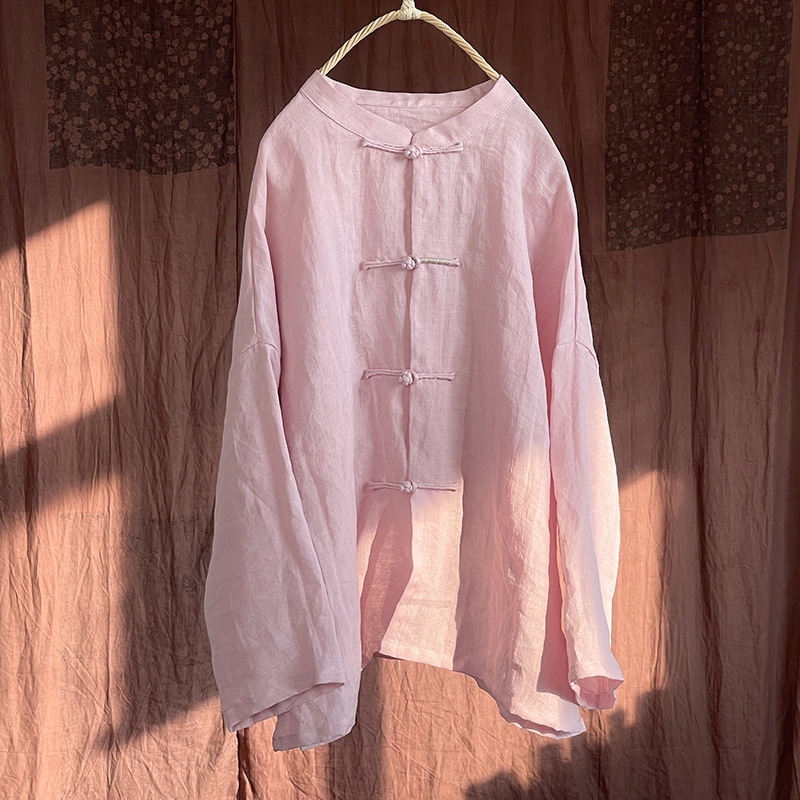 Hua Qiyi/린넨 중국 복고풍 국가 스타일 수제 탑 작은 셔츠 여성 오리지널 코튼 린넨 예술 셔츠