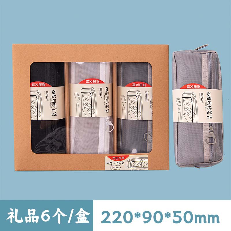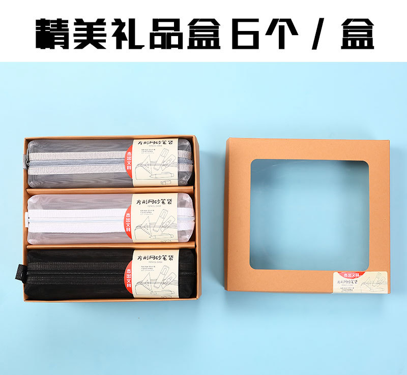 뛰어난 고전적인 단색 투명 메쉬 펜 가방 선물 상자 높은 가치 연필 가방 간단한 학생 문구 상자 도매