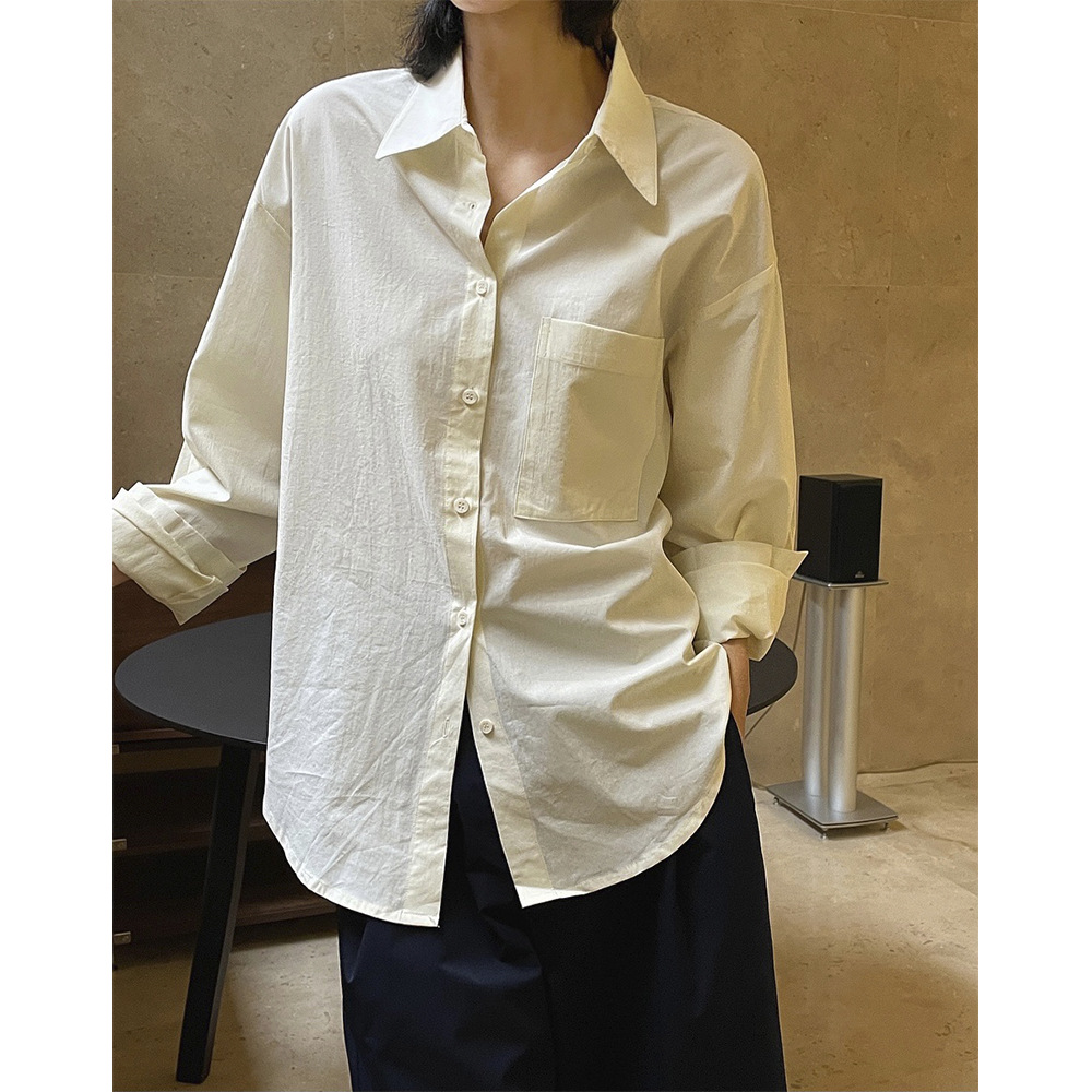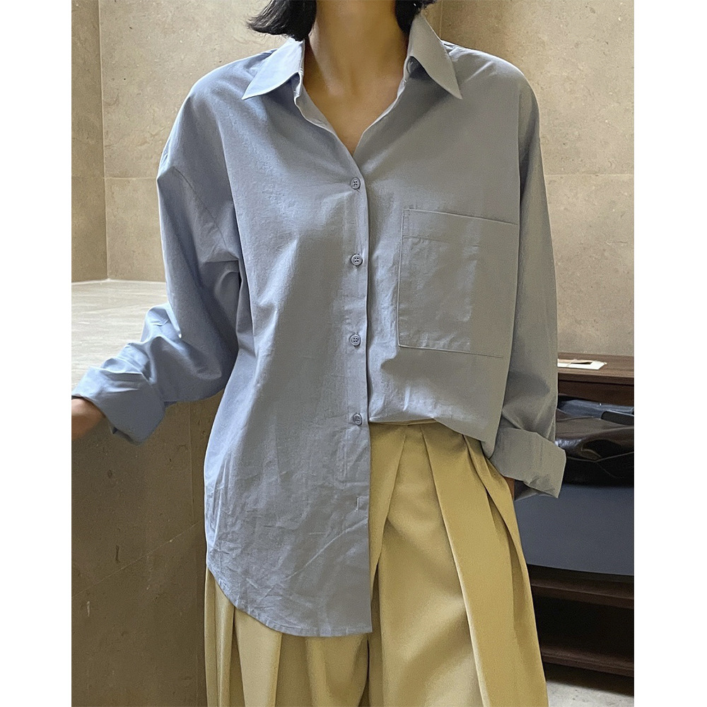 "개인 스타일" 이른 봄 새로운 간단한 게으른 옷깃 셔츠 느슨한 프로필 슬리밍 옷깃 여성용 긴 소매 탑스토어 가기