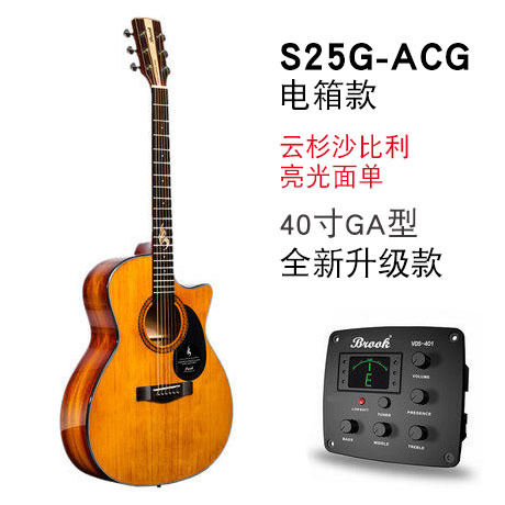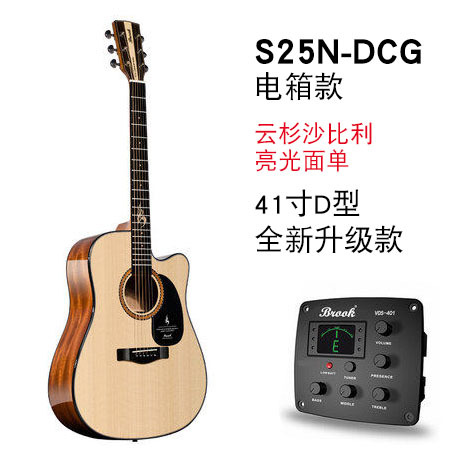 정품 브룩 기타 S25 민속 얼굴 싱글 보드 학생 초보자 남자와 여자의 전기 상자 41"스토어 가기