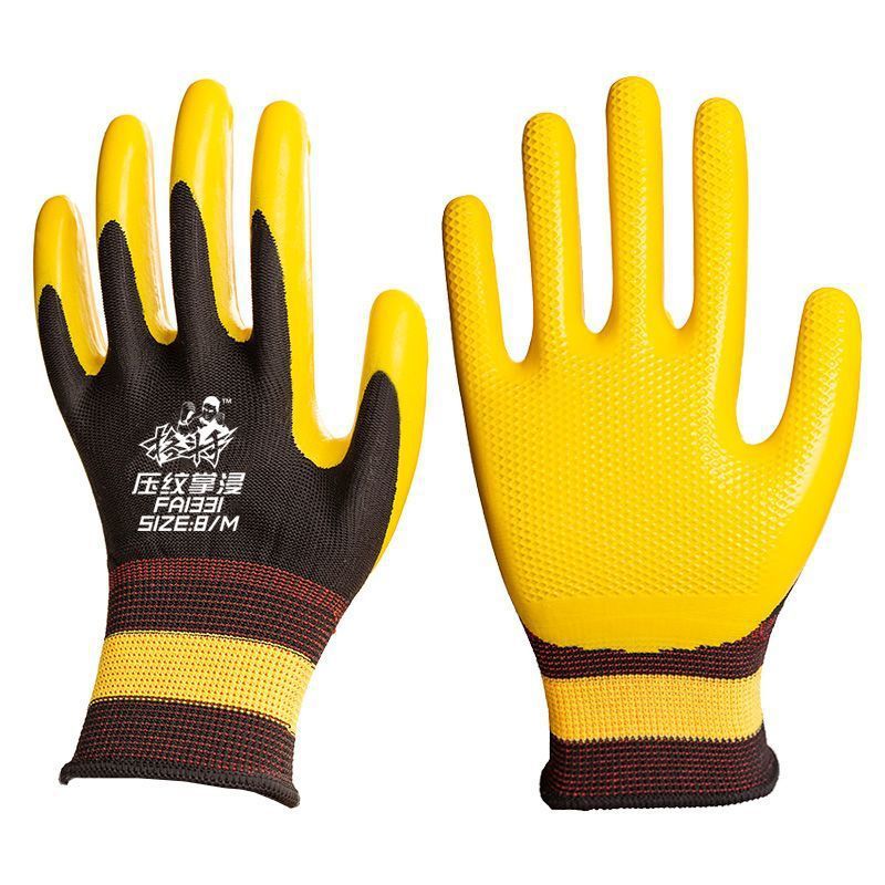 도매 양각 노동 장갑 내마모성 작업 세미 고무 담근 라텍스 미끄럼 방지 노동 현장 고무 장갑스토어 가기
