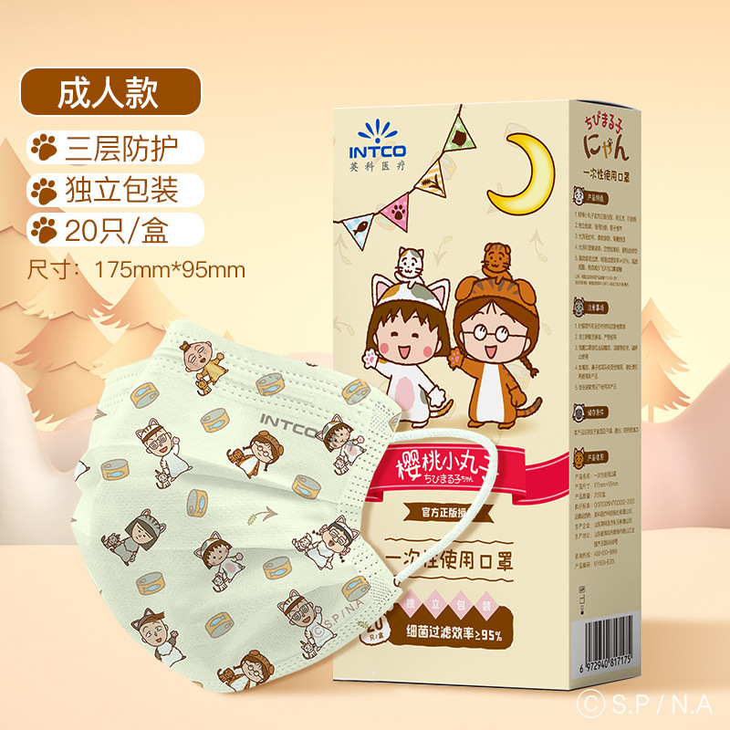 잉케 체리 마루 코 IP 공동 이름 일회용 보호 성인 3 층 봄과 여름 패션 통기성 마스크