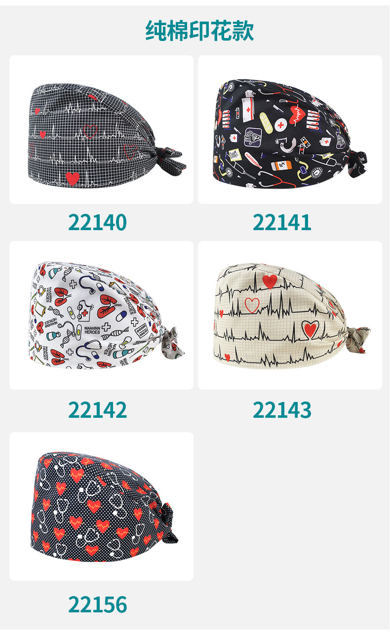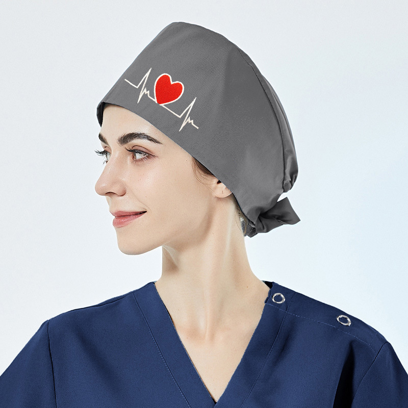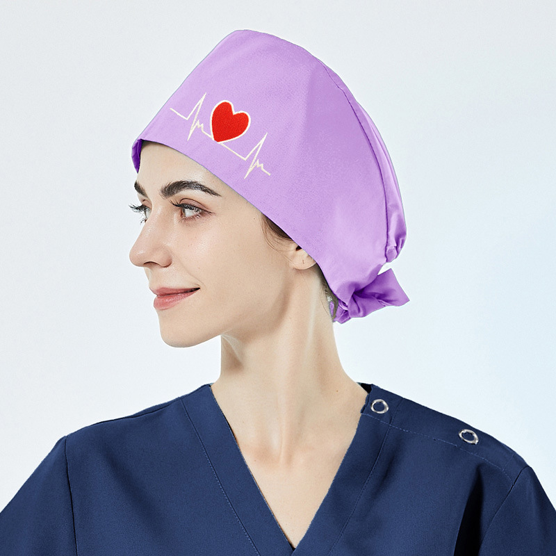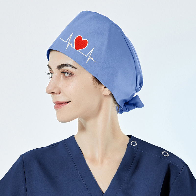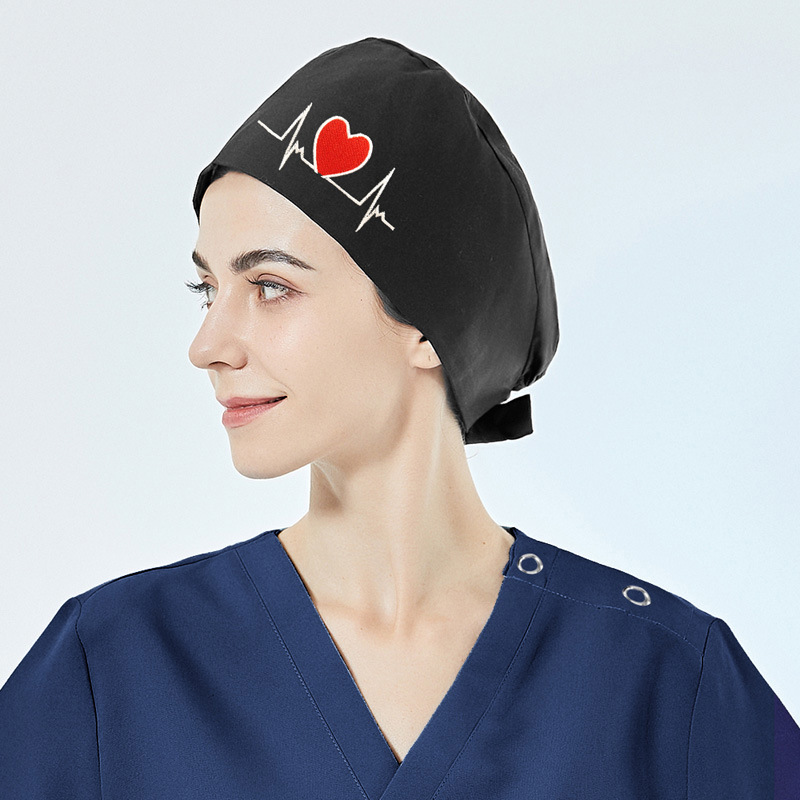 순면 자수 수술모, 산후 간호사 모자, 여성용 순면 신축성 남성용 의사 구강외과 마취실 의료용 모자