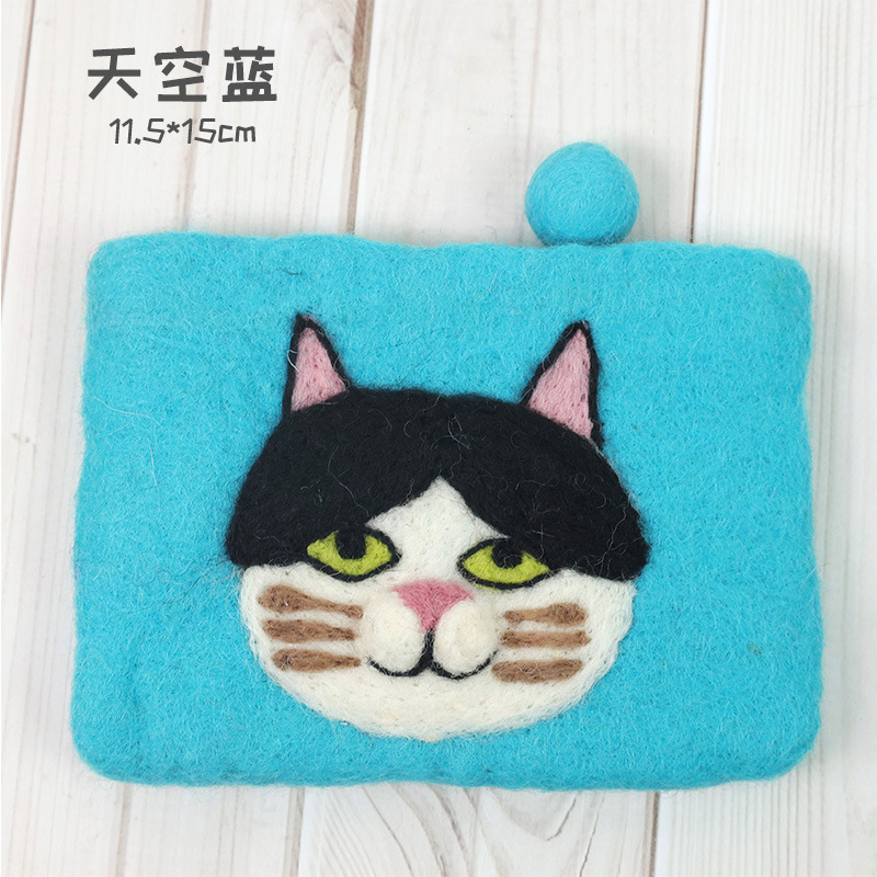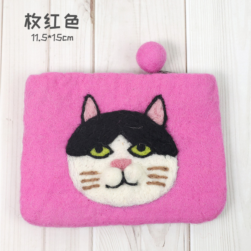 일본식 양모 펠트 고양이 동전 지갑 카드 가방 귀여운 새끼 고양이 만화 모양 어린이 성인 보관 가방 손 홀더