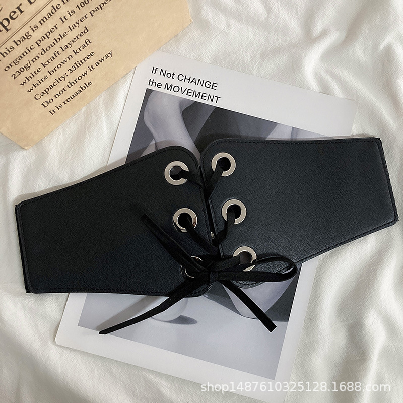 와이드 벨트 여성용 블랙 장식 원피스 세트 스웨터 꽉 허리 벨트 코트 모든 경기 허리 씰 외부 매듭 유행스토어 가기