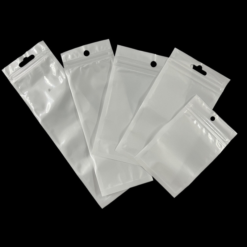 화이트 주얼리 백 음양 펄 필름 플라스틱 반투명 자체 밀봉 백 데이터 라인 휴대 전화 쉘 밀폐 포장 백스토어 가기