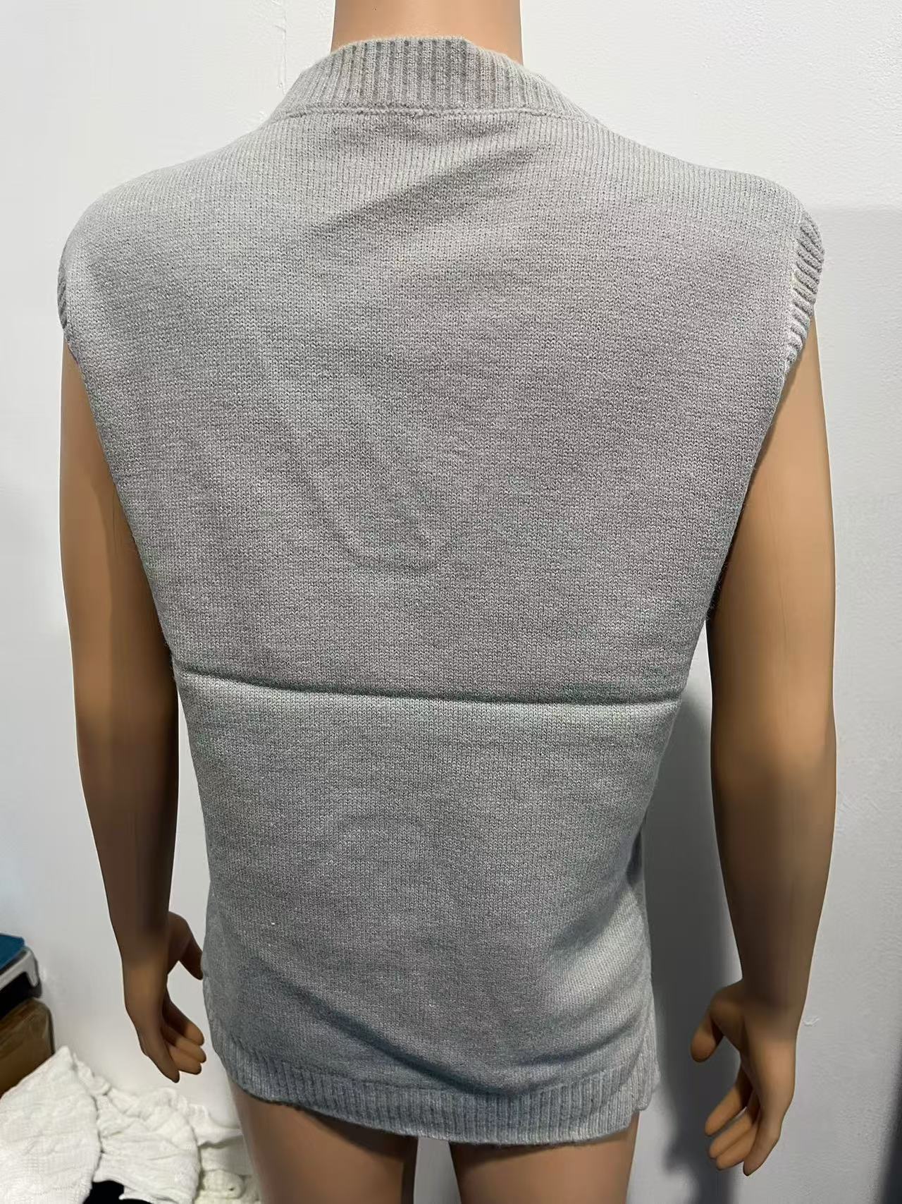 유럽과 미국 크로스 보더 아마존 봄과 가을 새로운 불규칙한 니트 조끼 패션 캐주얼 여성용 V-넥 스웨터