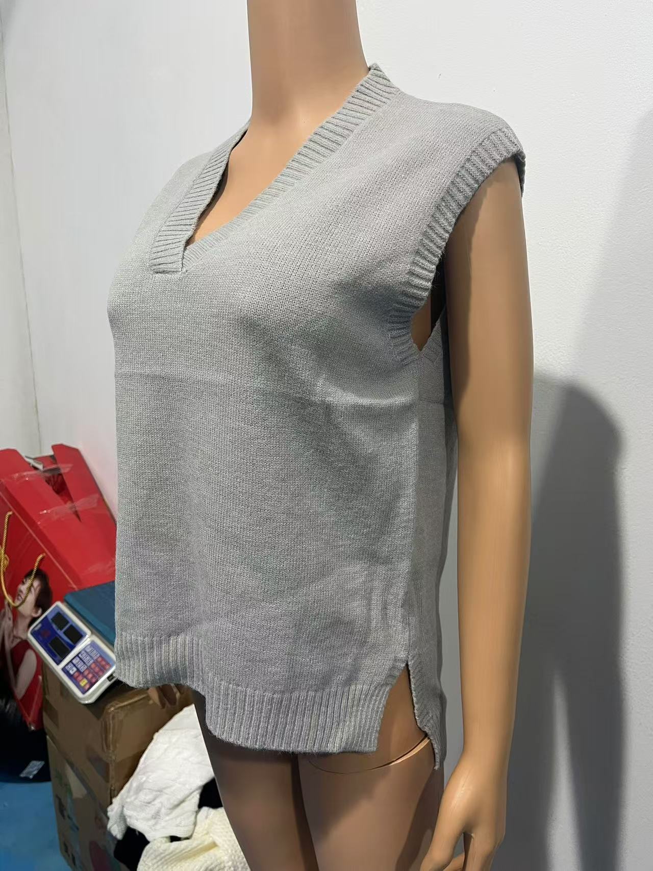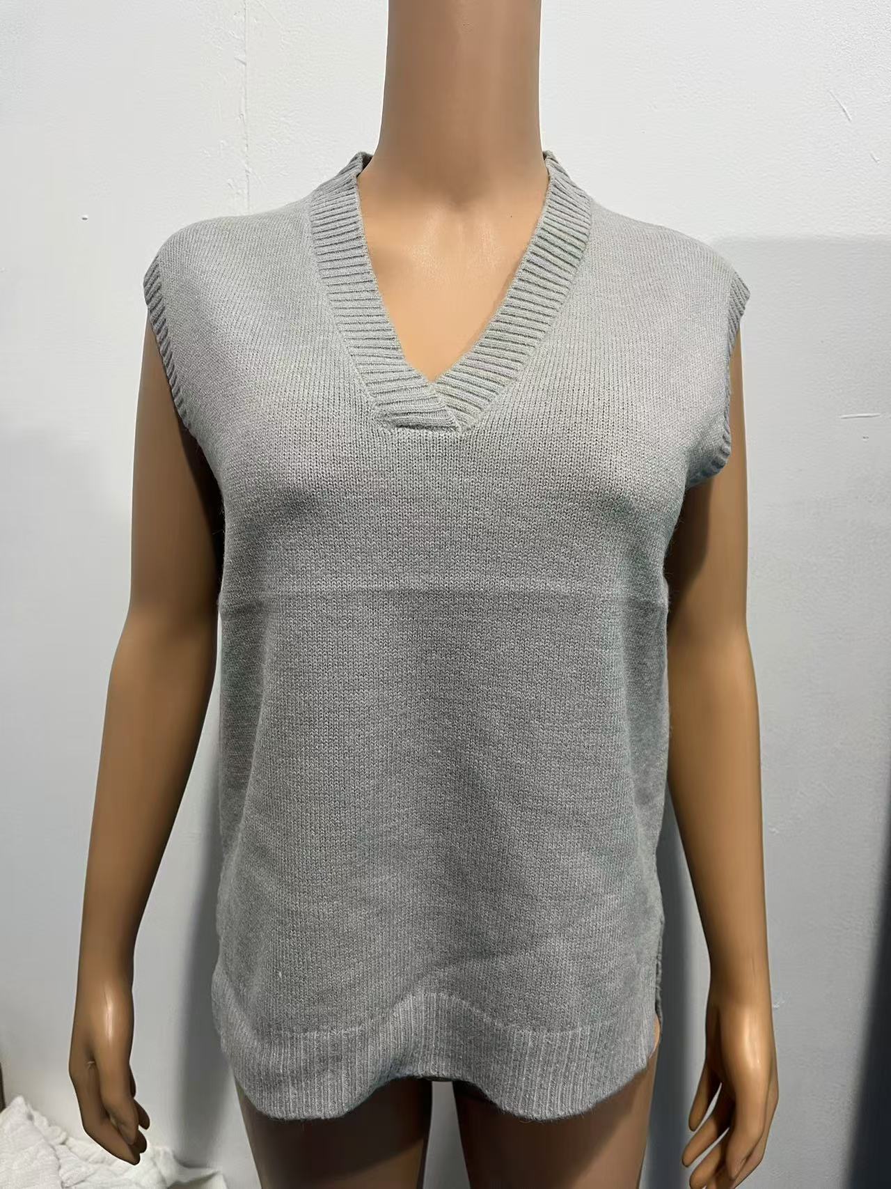 유럽과 미국 크로스 보더 아마존 봄과 가을 새로운 불규칙한 니트 조끼 패션 캐주얼 여성용 V-넥 스웨터스토어 가기