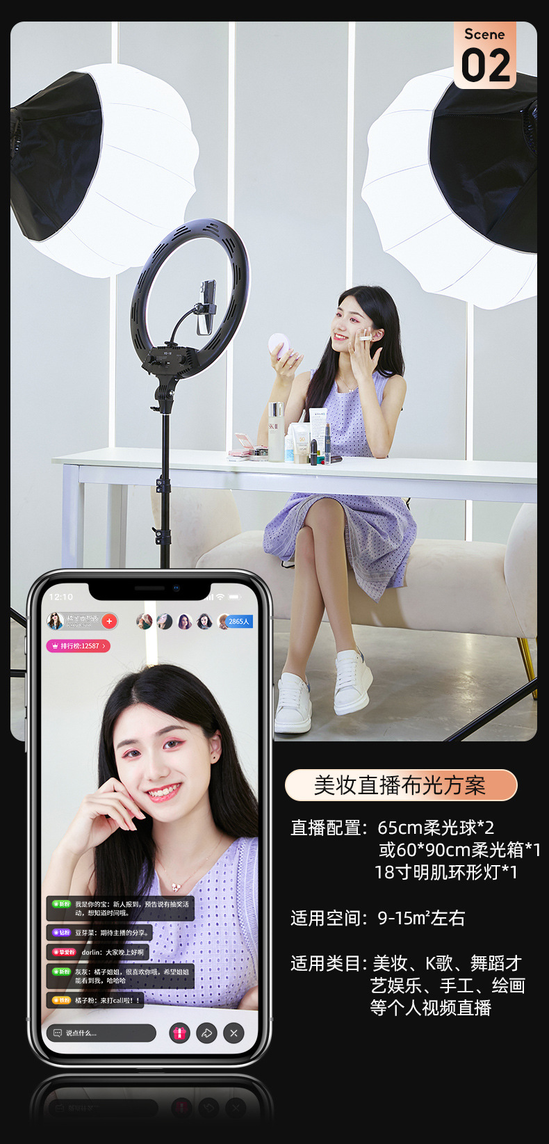 800W 라이브 방송 사진 촬영용 특수 조명, 앵커용 뷰티 LED 사진 촬영 실내 조명 태양광 램프스토어 가기