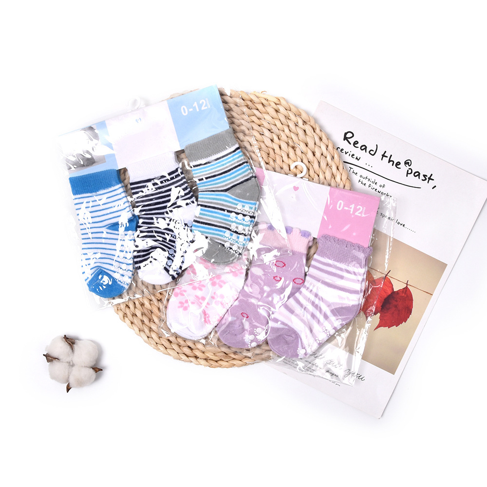 대외 무역 아기 양말 0-12 월 유럽과 미국 소년 소녀 아기 미끄럼 방지 바닥 양말 신생아 분배면 양말 3 쌍스토어 가기