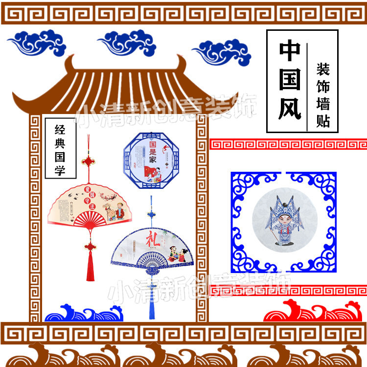 유치원 수업 문화 벽 레이아웃 바람 고전적인 빨간 부직포 직물 창 코너 벽 스티커 재료스토어 가기