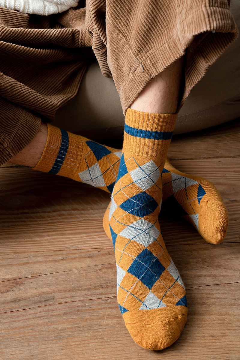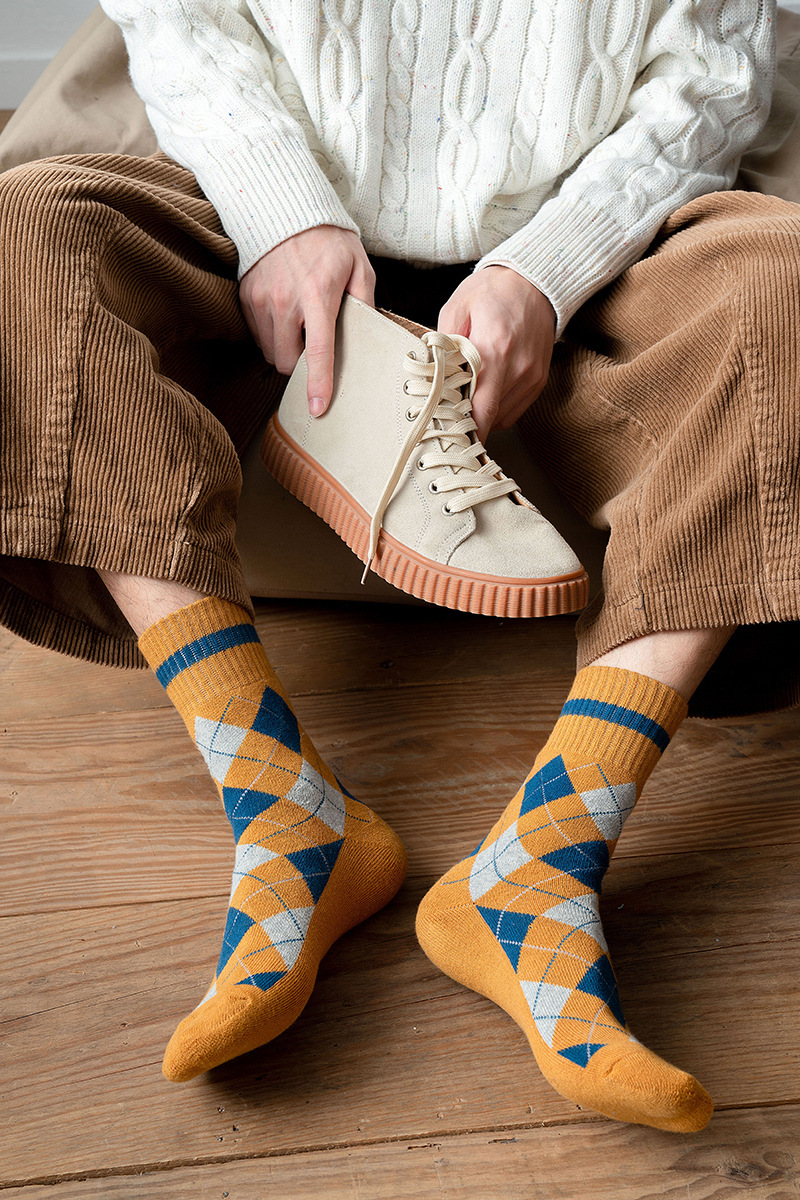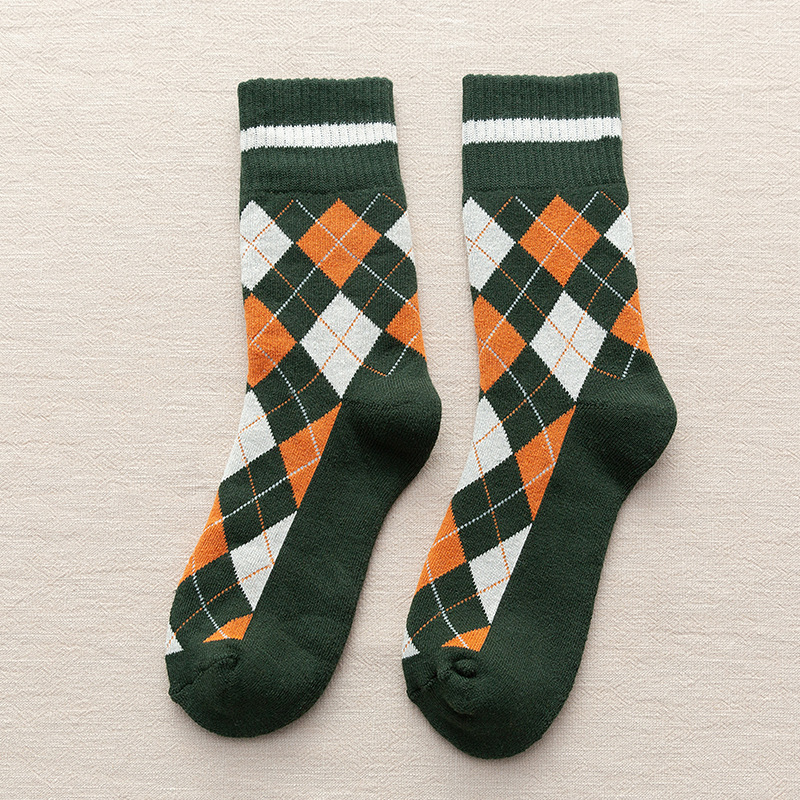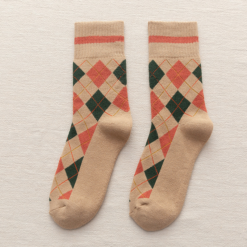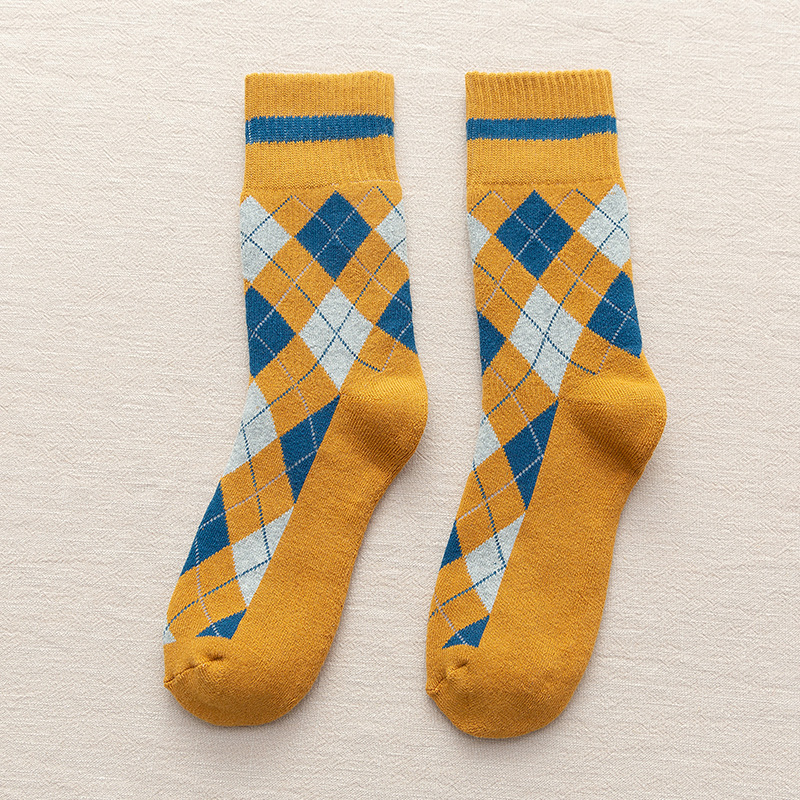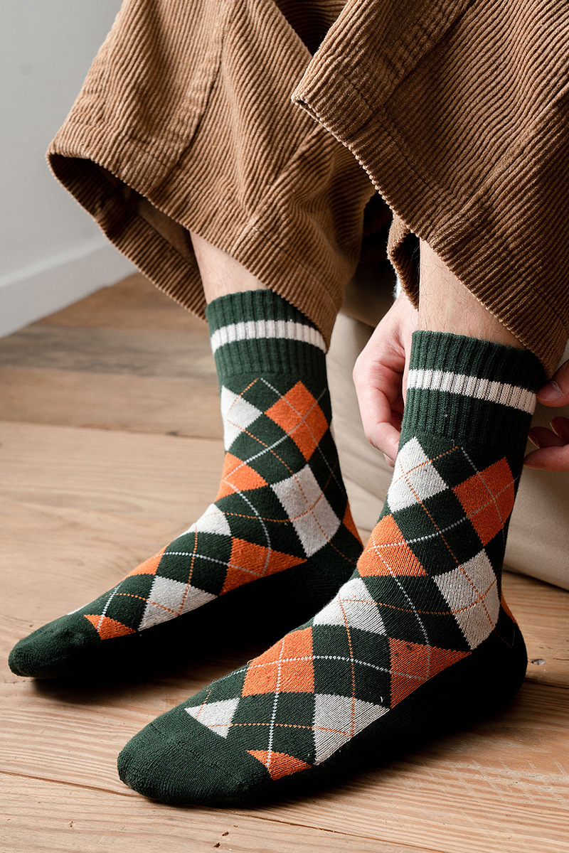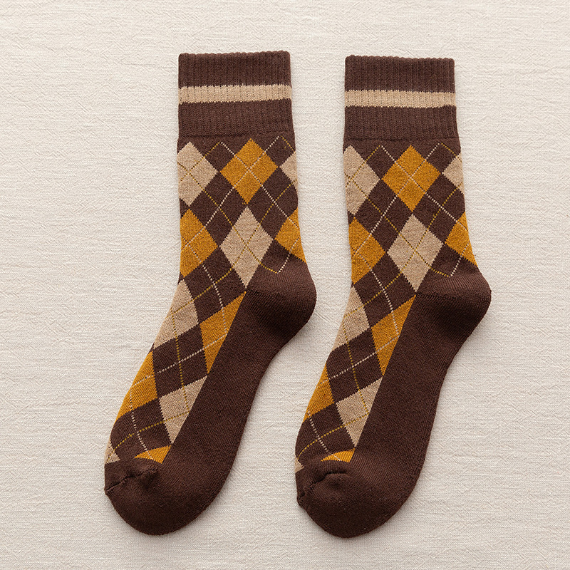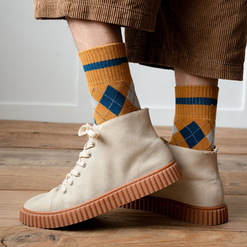 남성용 두꺼운 테리 양말 영국식 다이아몬드 모양의 격자 따뜻한면 양말 겨울 맞춤형 유행 빈티지 튜브 양말스토어 가기