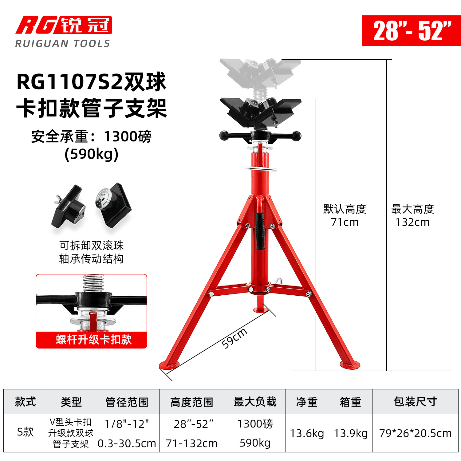 • RG1107S-2 둥근 머리 (높이 범위 71-132cm)