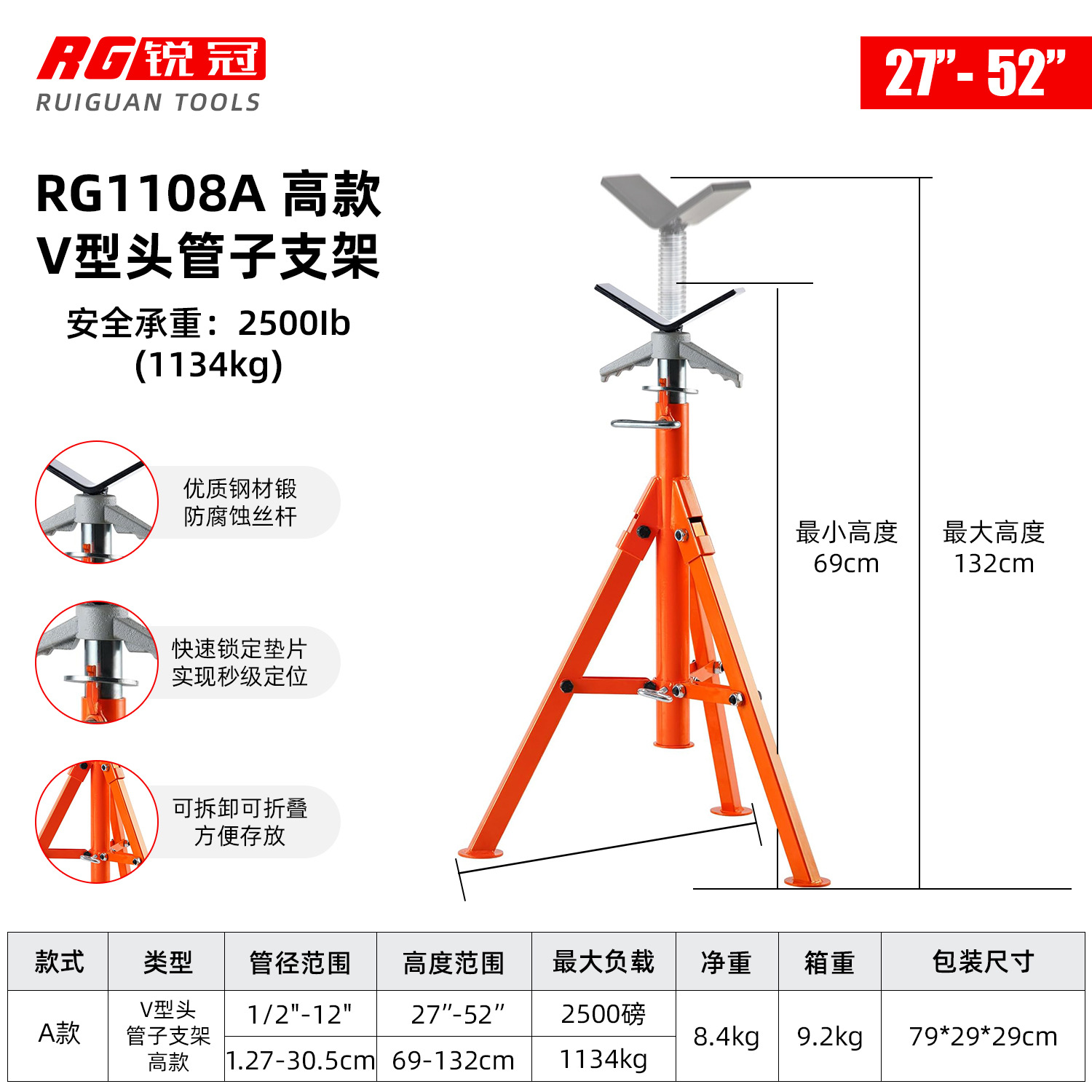 • RG1108A V 헤드(높이 범위 69-132cm)