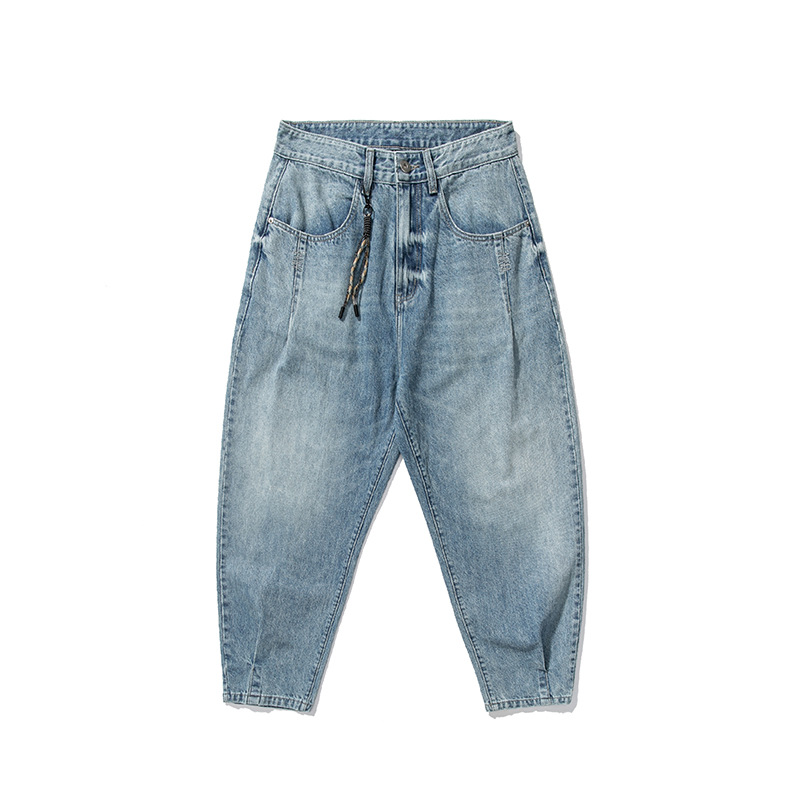 봄과 가을 캐주얼 트렌디 브랜드 워싱 청바지 남자의 2023 새로운 일본 복고풍 느슨한 블루 와이드 레그 팬츠스토어 가기