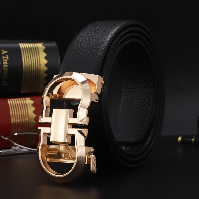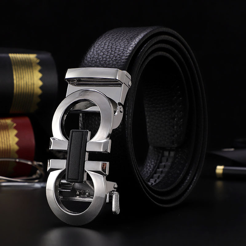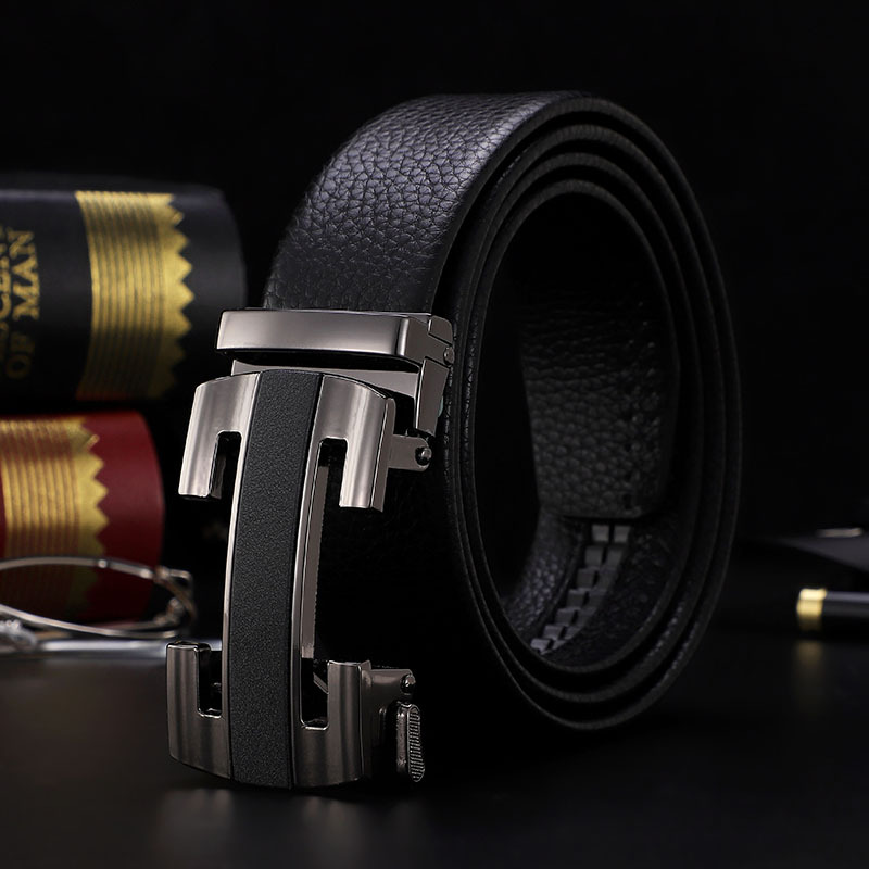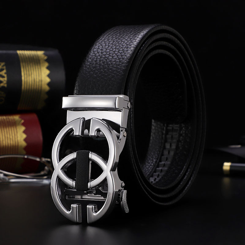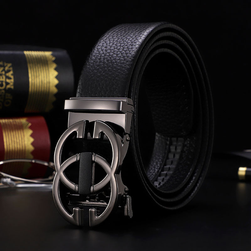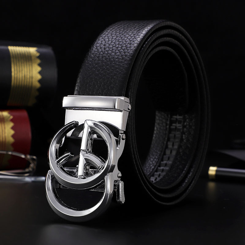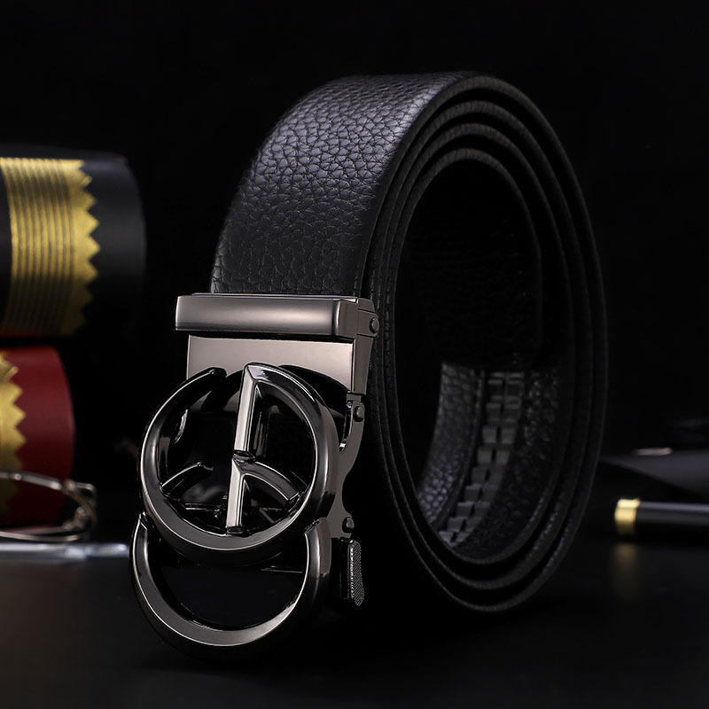 남성 벨트 자동 버클 벨트 한국 패션 캐주얼 중년 청소년 비즈니스 리치 패턴 클립 가죽 바지 도매스토어 가기