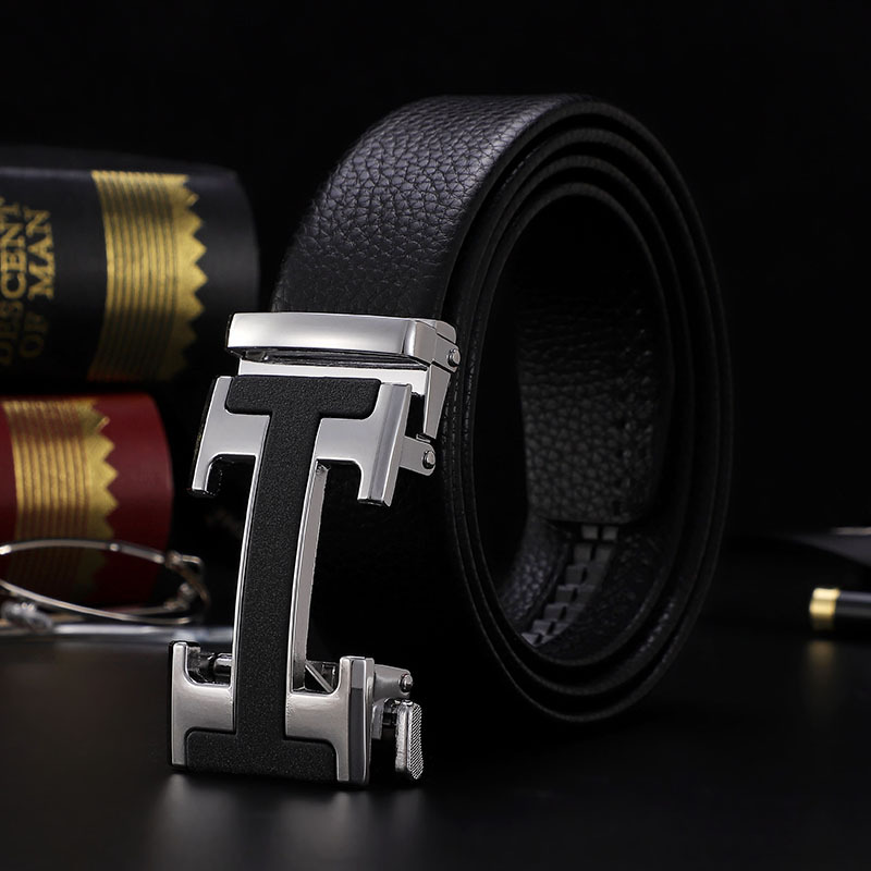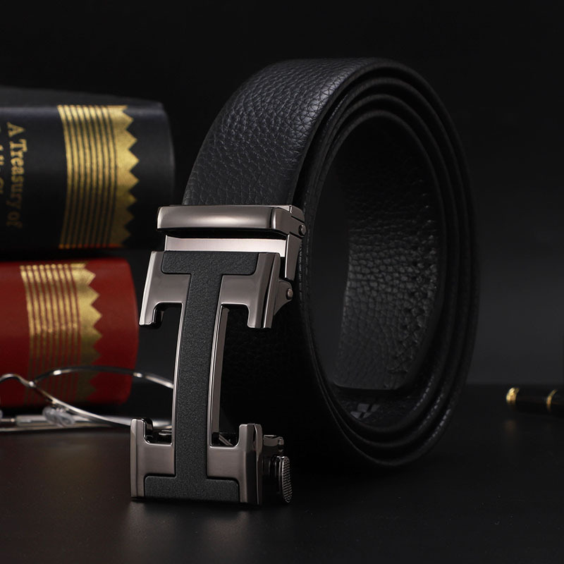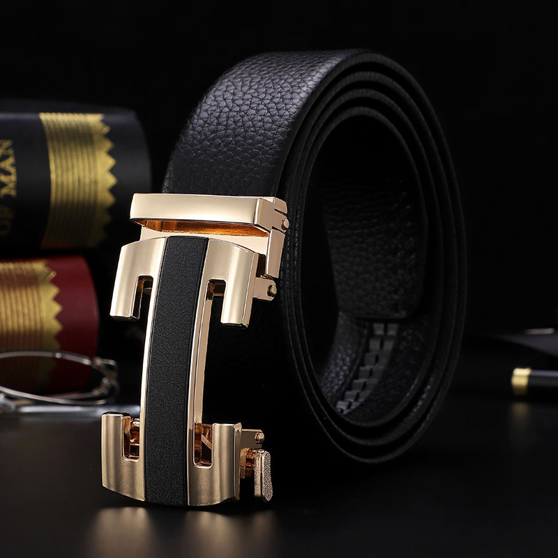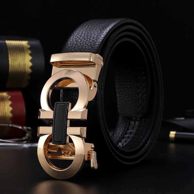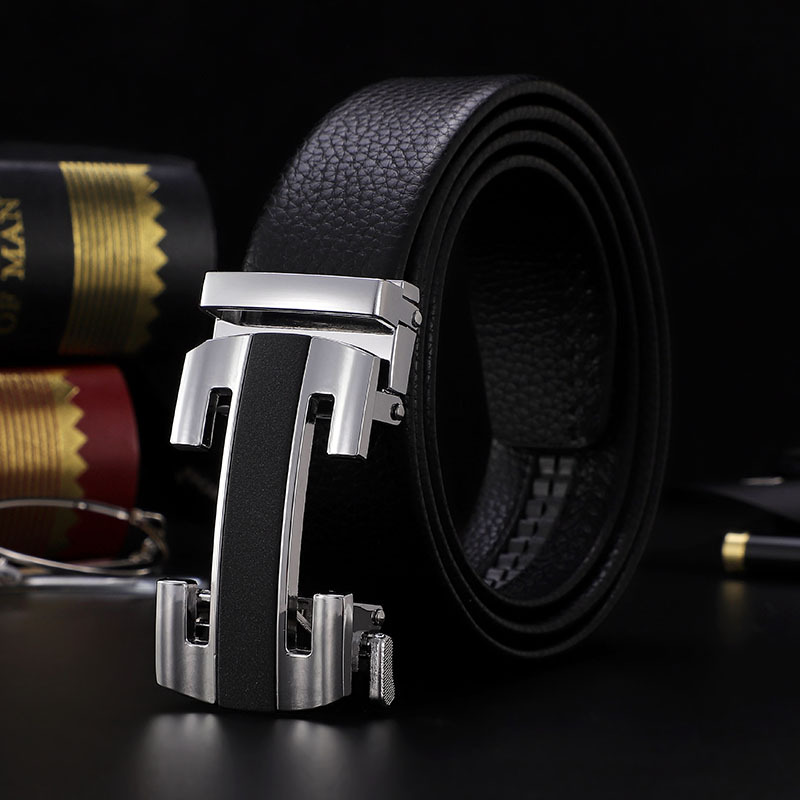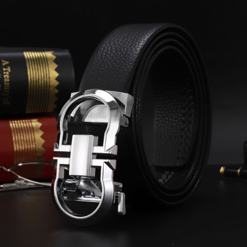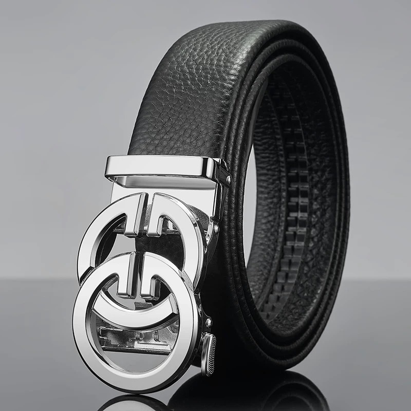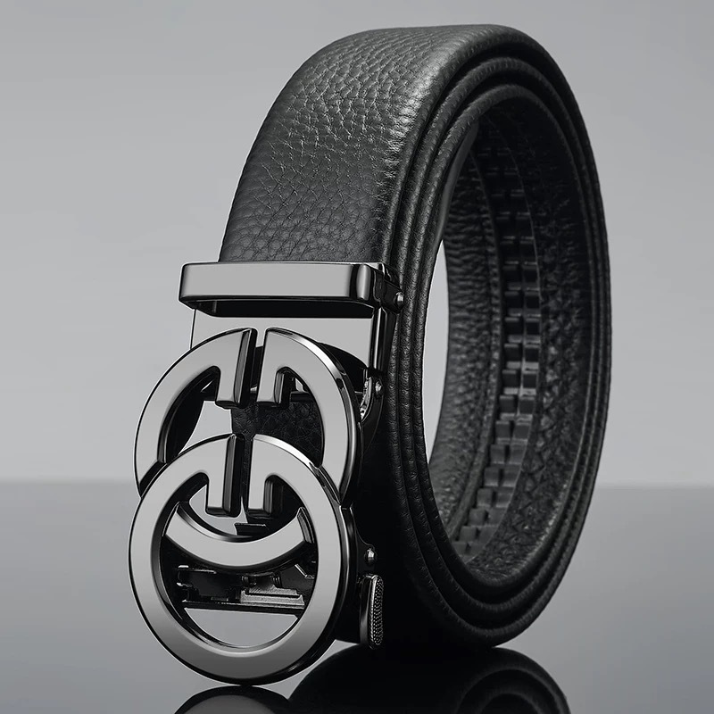 남성 벨트 자동 버클 벨트 한국 패션 캐주얼 중년 청소년 비즈니스 리치 패턴 클립 가죽 바지 도매스토어 가기