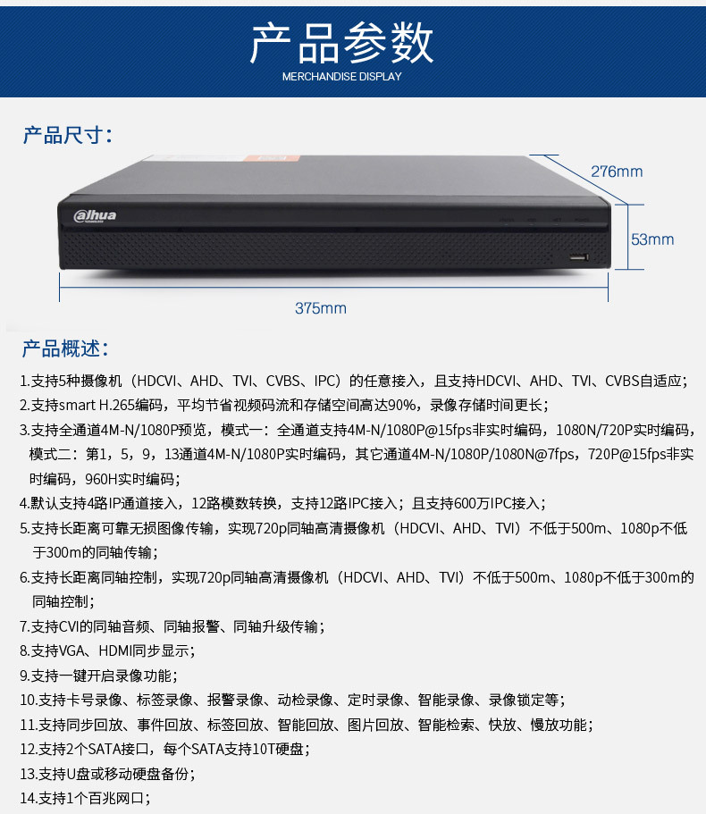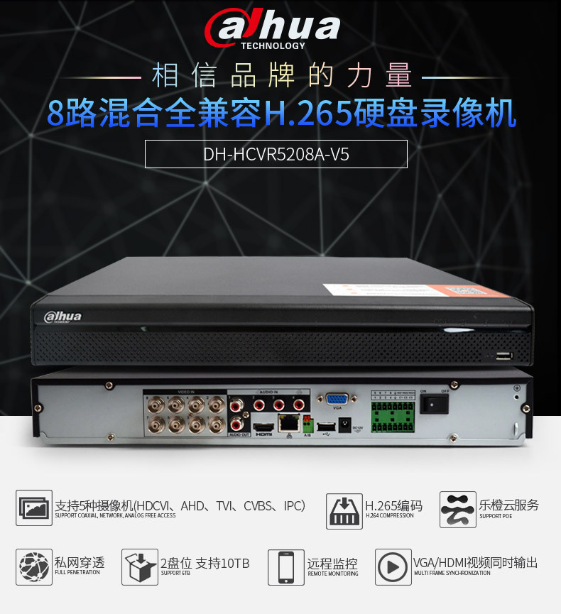 Dahua dahua 감시 비디오 레코더 8 방향 DVR 동축 HD 감시 비디오 레코더 DH-HCVR5208스토어 가기