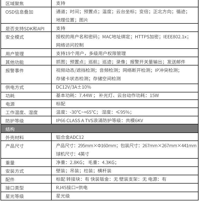 다화 다화 카메라 4 백만 볼 머신 DC12V 별빛 야간 시력 모니터링 DH-SD-49D423XB