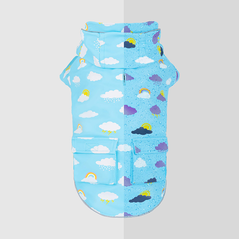 애완 동물 의류 맞춤형 고급 창의적이고 흥미로운 개 비옷 봄과 가을 물에 노출되면 색상이 변하는 애완 동물 비옷 도매스토어 가기