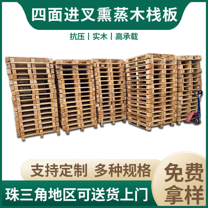 사용 된 4 면 포크 나무 팔레트 단단한 나무 소나무 훈증 수출 창고 지게차 높은 압축 및 높은 하중 베어링 카드 보드