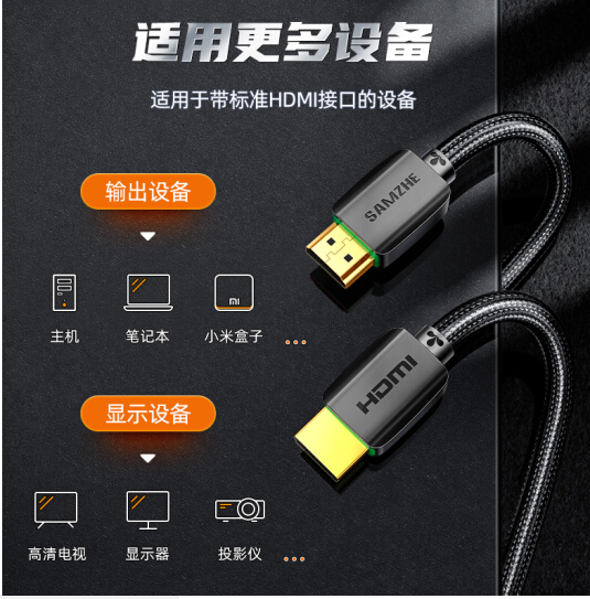 山泽(SAMZHE)HDMI线2.0版 4k数字高清线 3D视频线 笔记本电脑连接电视投影仪显示器连接线 黑色