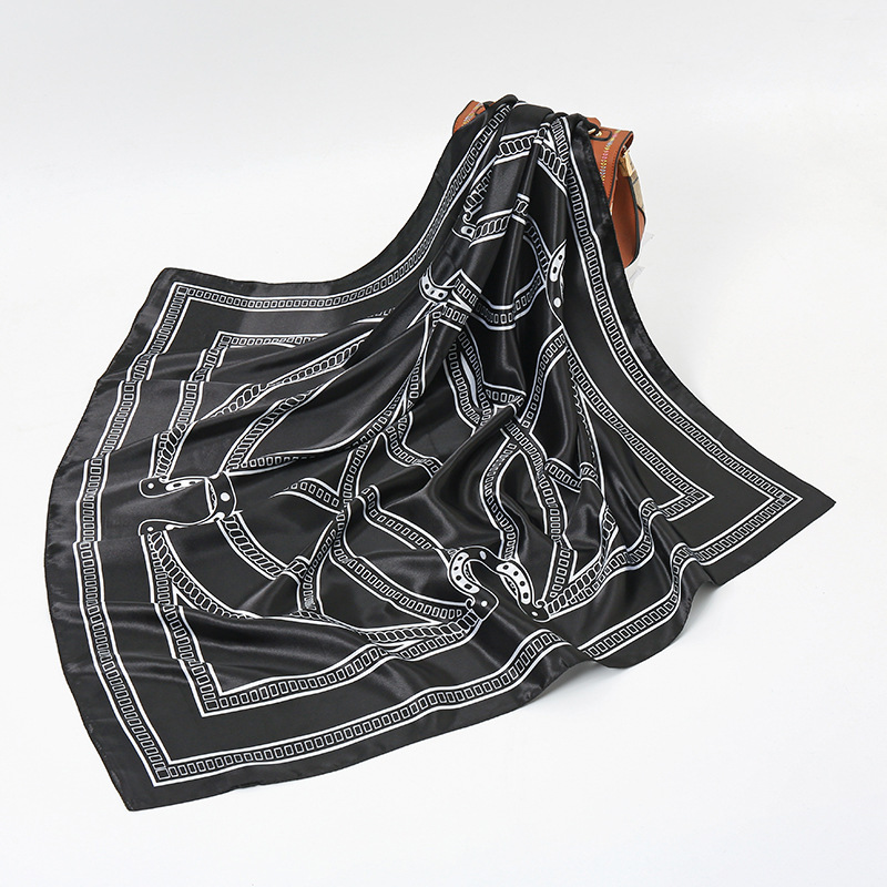 가오 그는 간단한 패션 체인 새틴 스카프 민족 여성 머리 스카프 장식 사각형 스카프 손 선물