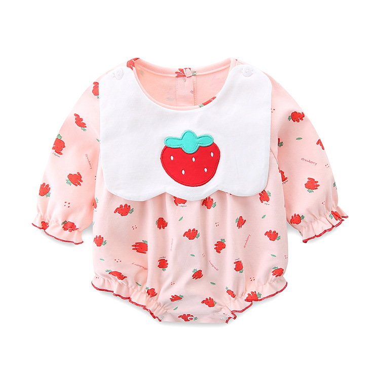 2025 봄 캐주얼 패션 롬퍼 긴팔 한국 스타일 여자 아이 딸기 카라 귀여운 프린트스토어 가기