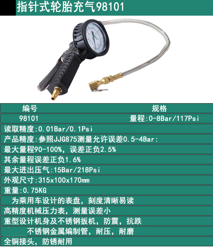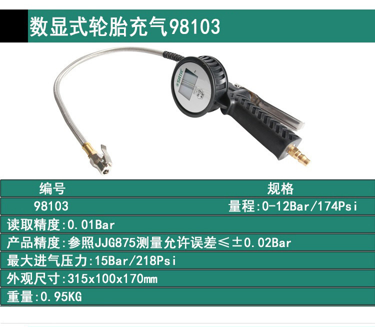 시다 에어 미터 전자 타이어 압력 디지털 디스플레이 타이어 인플레이션 건 타이어 기계 특수 편조 튜브 98103 98105