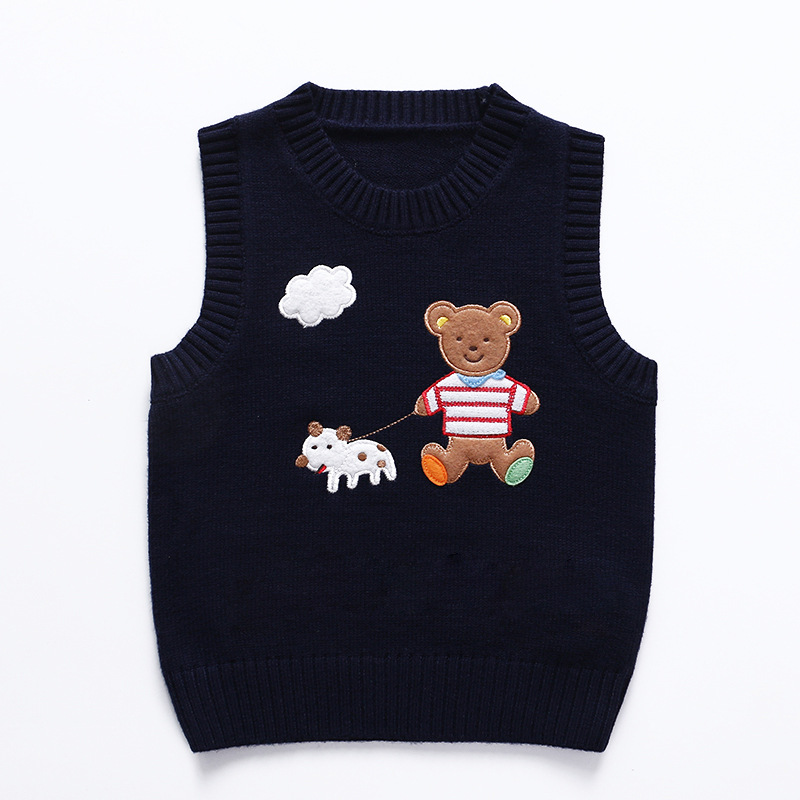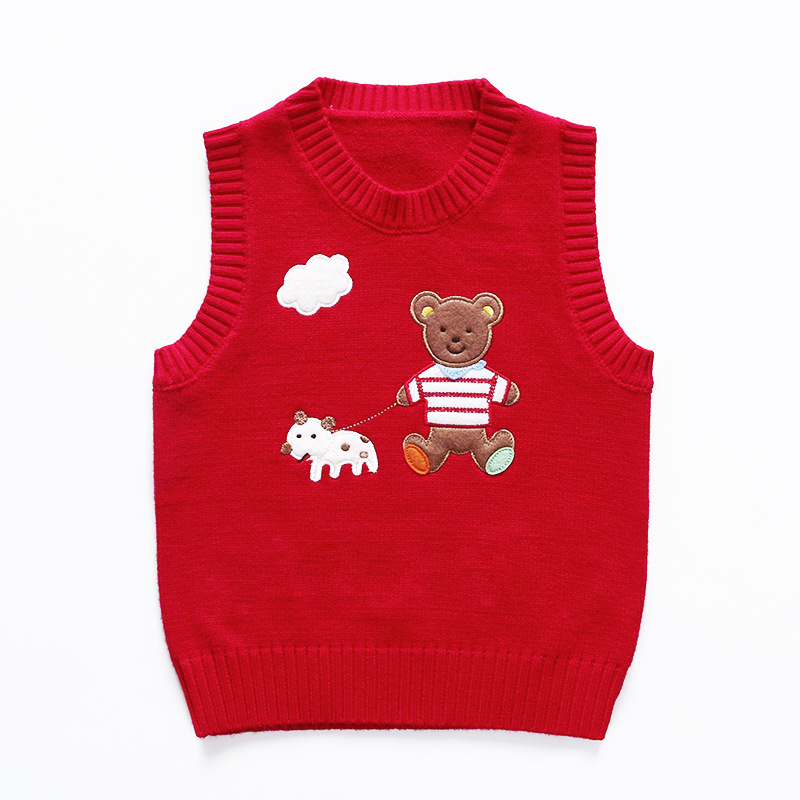 卡通字母熊新年款红色毛衣马甲背心
