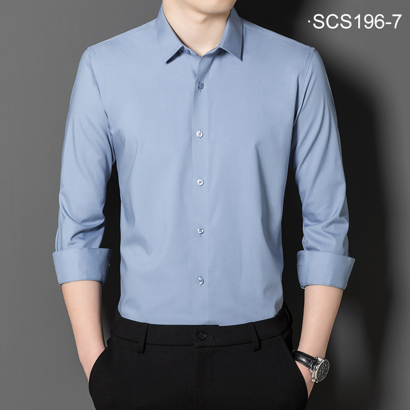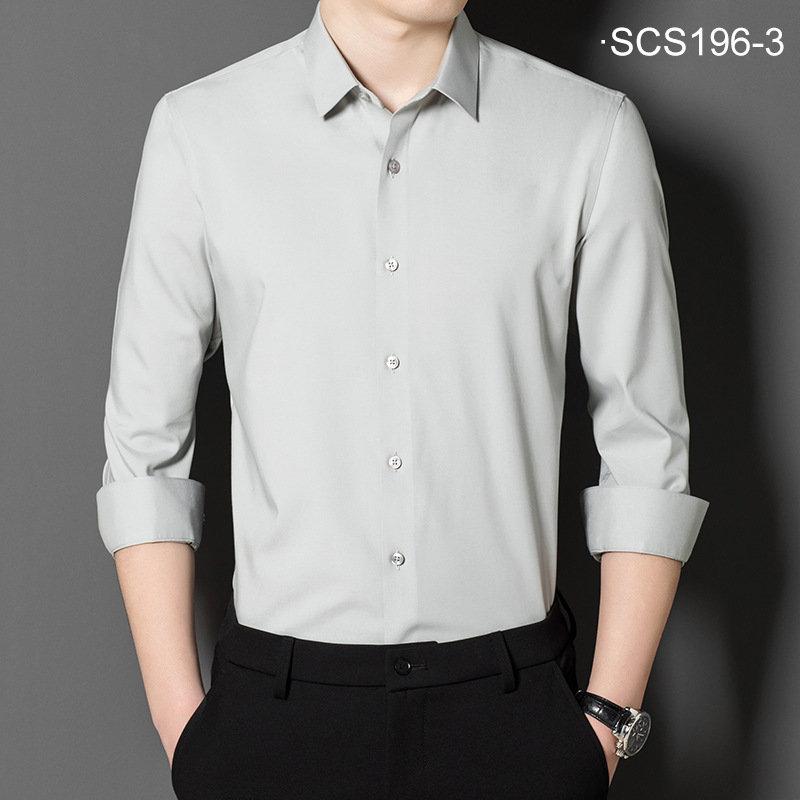 [뽕나무 실크] 브랜드 라이트 럭셔리 남성용 긴팔 셔츠 봄과 여름 새로운 비즈니스 캐주얼 원피스 단색 비 다림질 셔츠