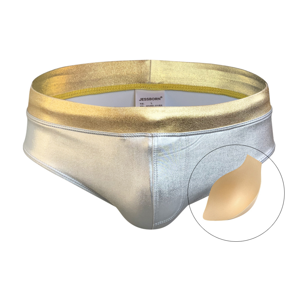JESSBORN 남자 청동 및 실버 청동 복서 삼각형 수영 트렁크 컵 당황 방지 유럽과 미국 프로 수영 트렁크 국경을 넘어스토어 가기