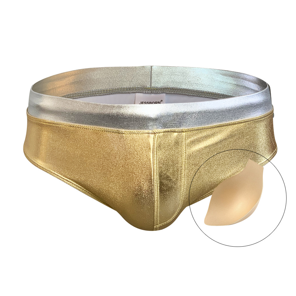 JESSBORN 남자 청동 및 실버 청동 복서 삼각형 수영 트렁크 컵 당황 방지 유럽과 미국 프로 수영 트렁크 국경을 넘어