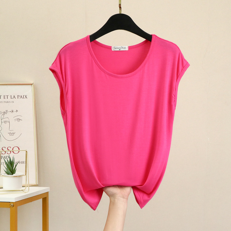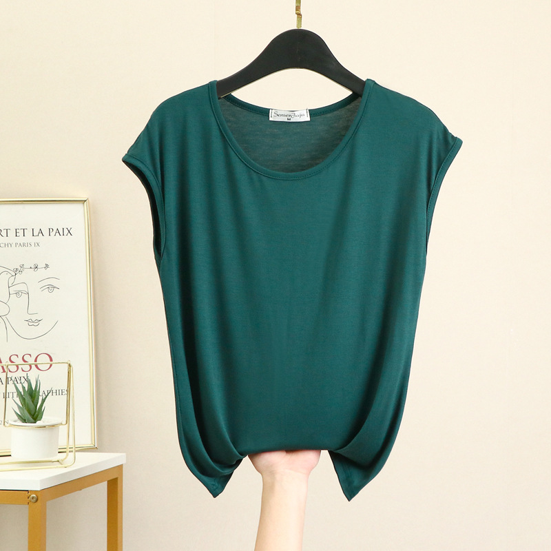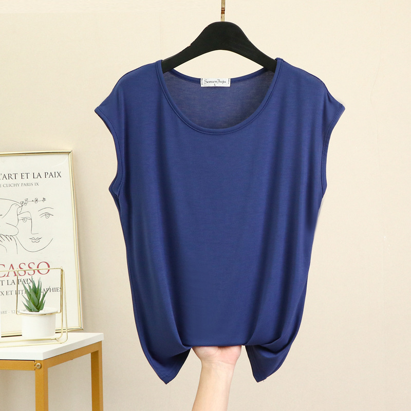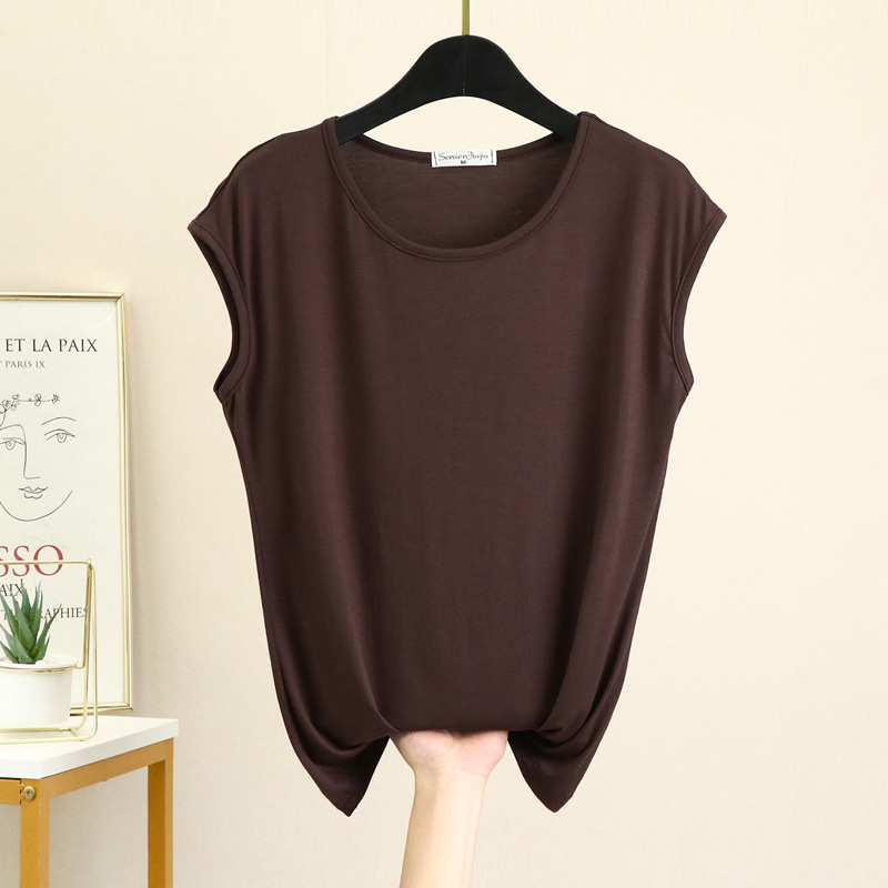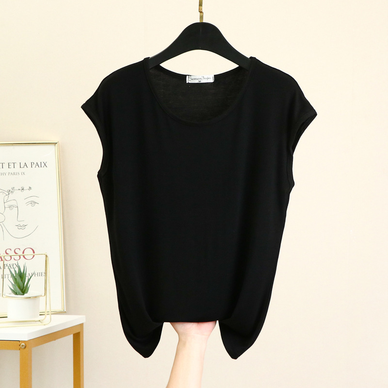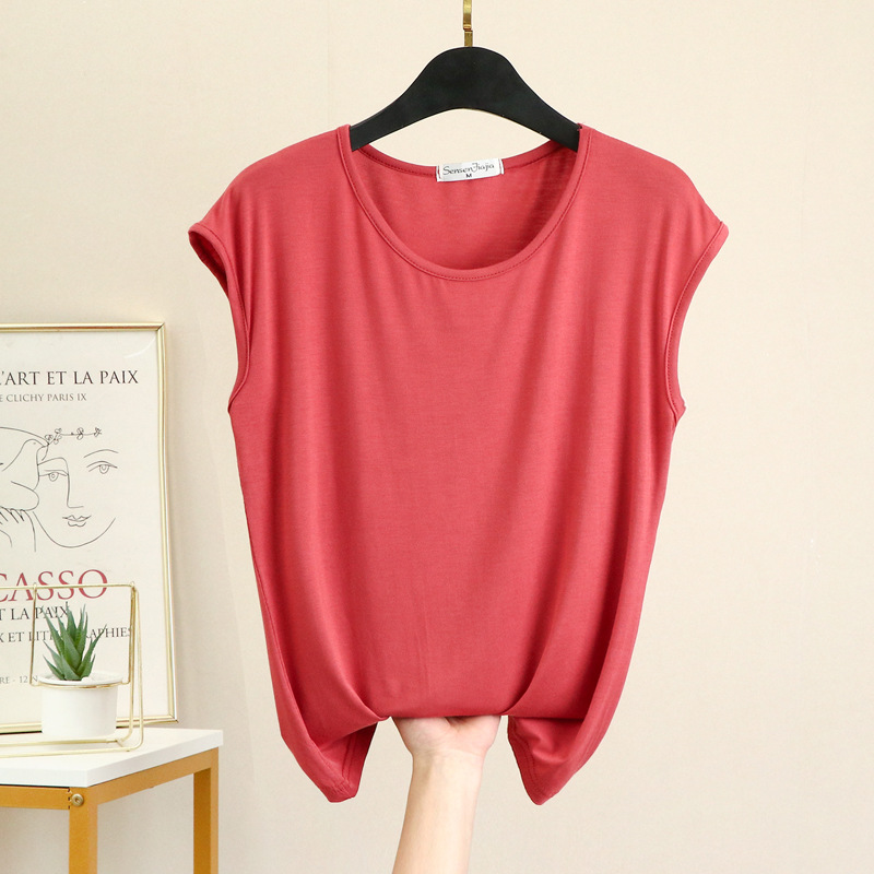 민소매 티셔츠 여성용 여름 모달 베이스 셔츠 세련된 내부 착용 겉옷 슬림 핏 모든 매치 탑 얇은 여성 의류스토어 가기