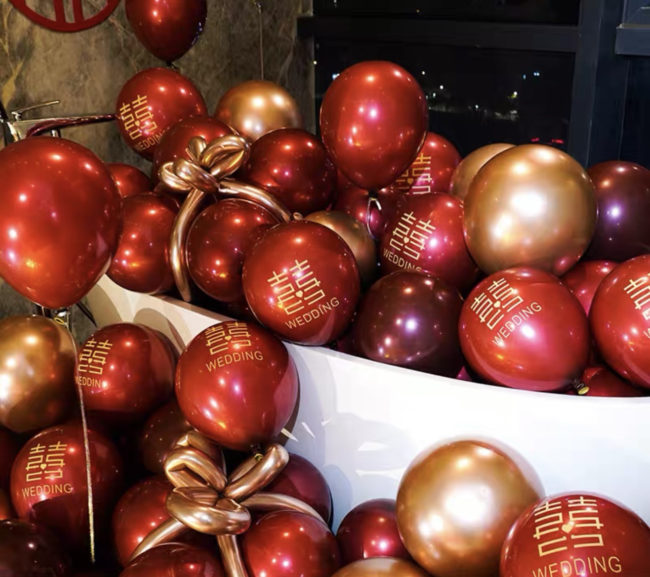 웨딩 네트 레드 웨딩 룸 풍선 세트 Daquan 웨딩 룸 더블 웨딩 레드 웨딩 장면 장식 용품스토어 가기