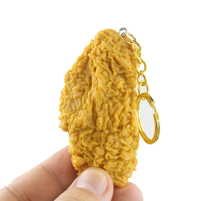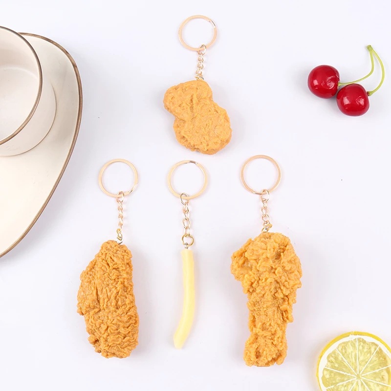 국경 간 폭발 시뮬레이션 닭 다리 열쇠 고리 감자 튀김 열쇠 고리 미식가 모델 재미 닭 날개 열쇠 고리 도매