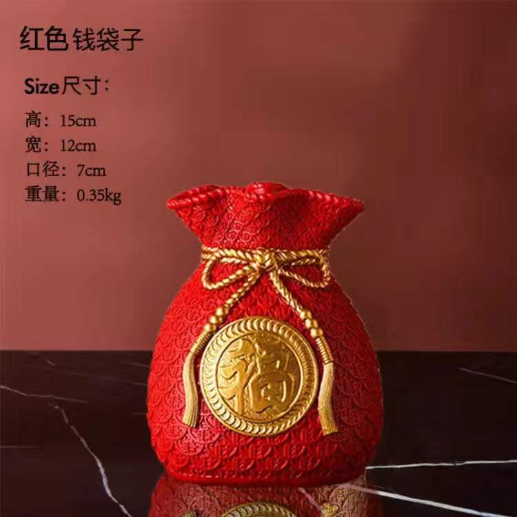 • 빨간 큰 행운의 가방 꽃병 장식품 + 50 밀 귀