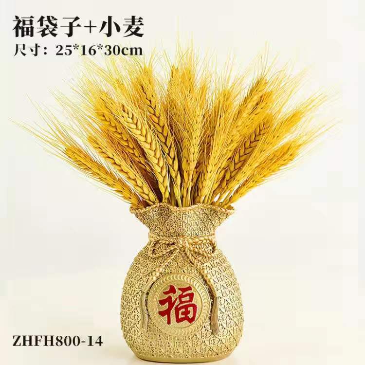 • 황금 축복받은 가방 꽃병 장식품 + 50 밀 귀